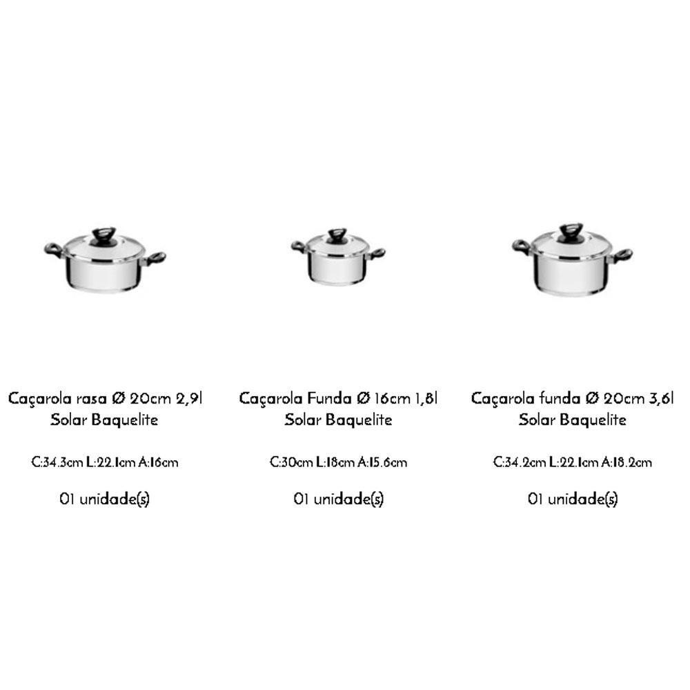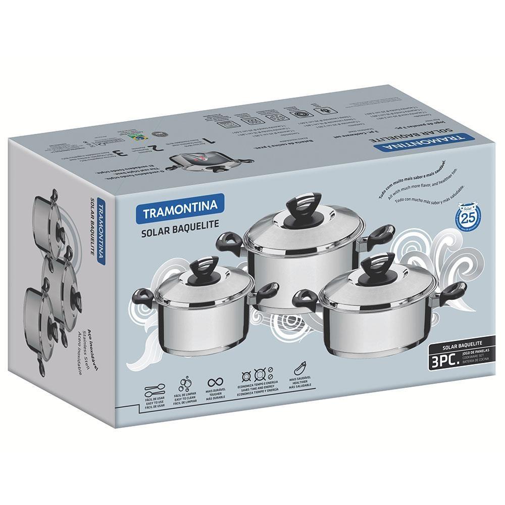 Jogo de Panelas Tramontina Solar Baquelite em Aço Inox com Fundo Triplo 3 Peças 65720740