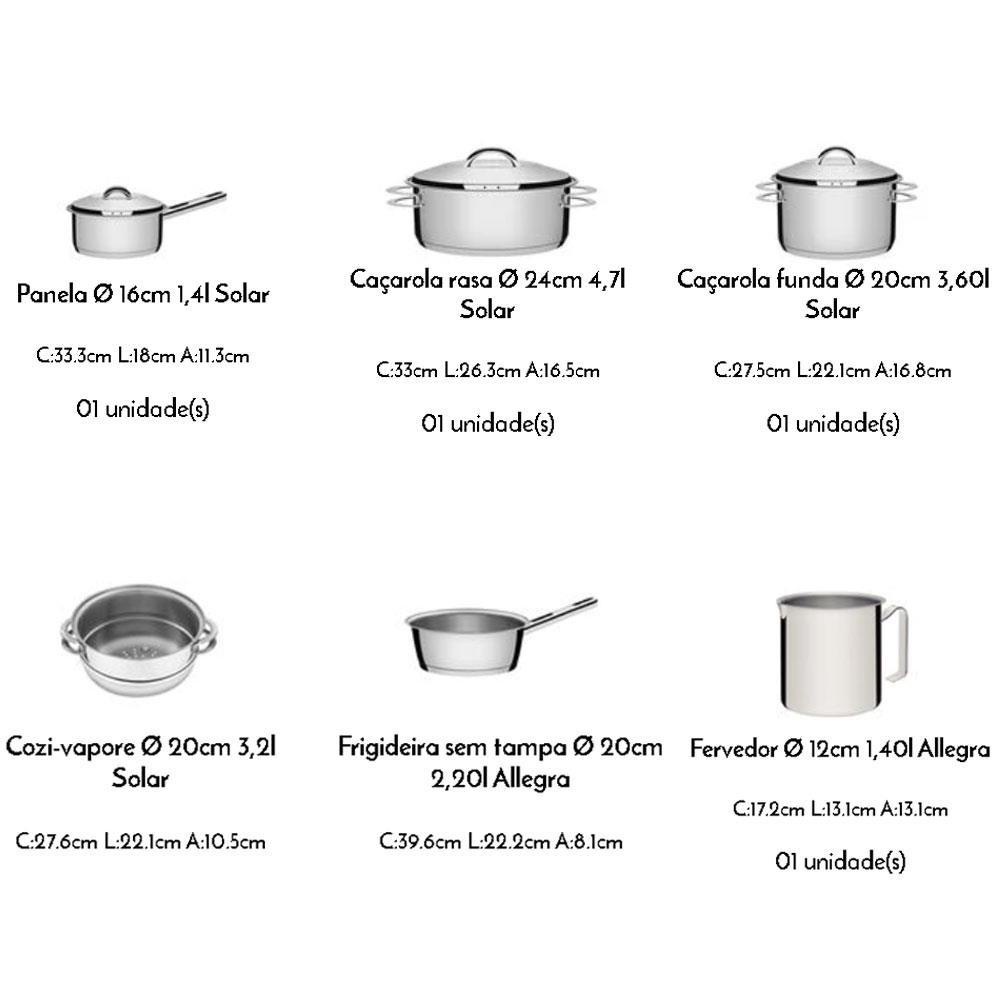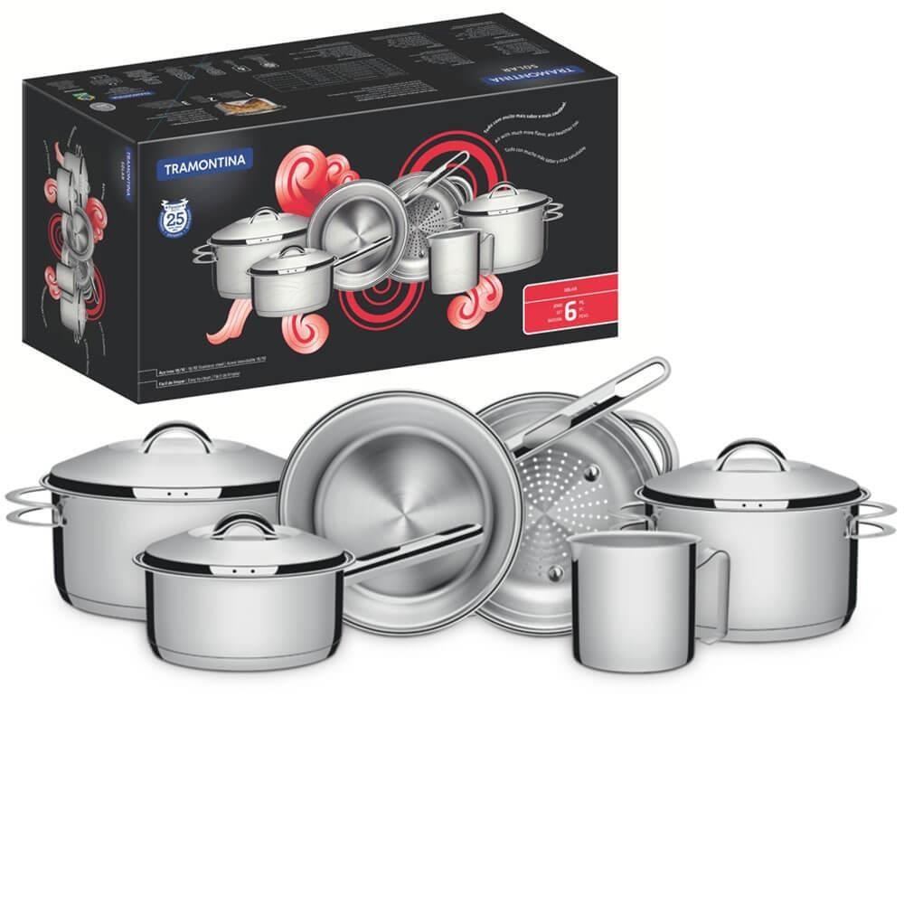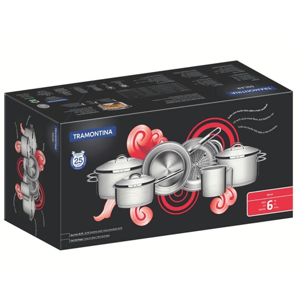Jogo de Panelas Tramontina Solar 6 Peças Aço Inox com Fundo Triplo e Tampas de Inox 65510200