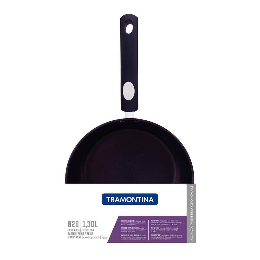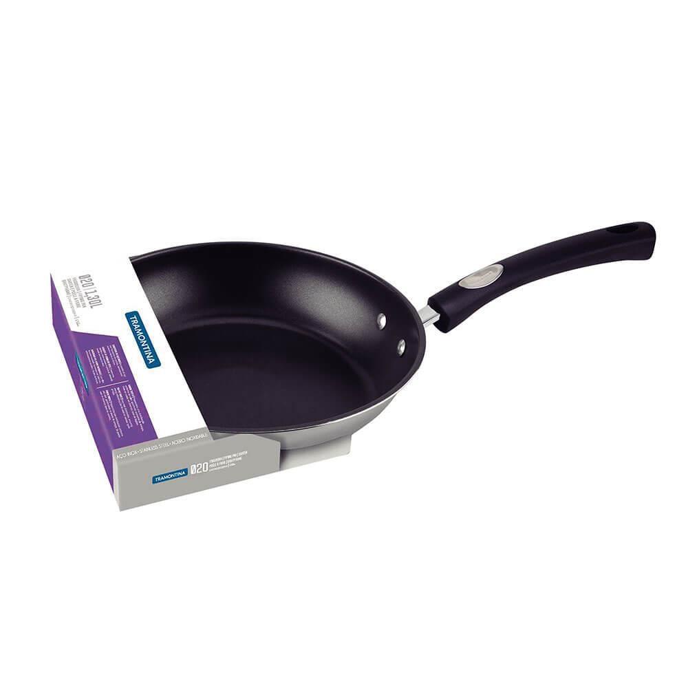 Frigideira Tramontina Solar Aço Inox Fundo Triplo Revest. Int.o Antiaderente 20cm 1,3L 62135207
