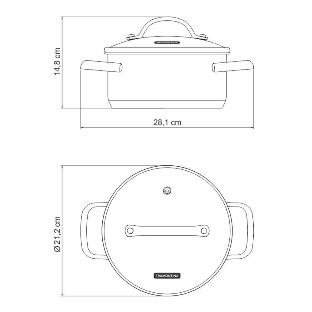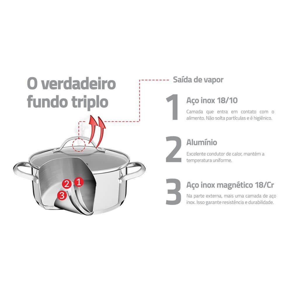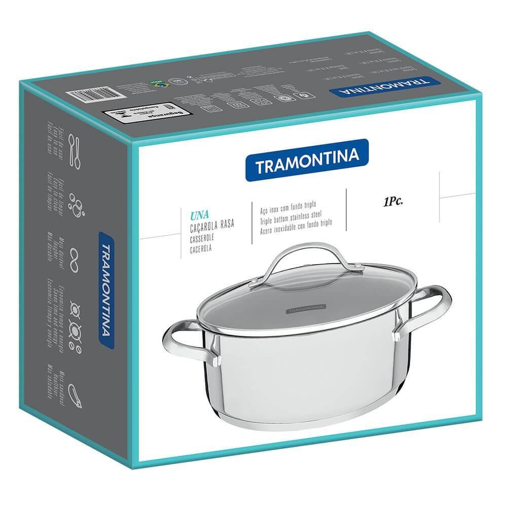Caçarola Rasa Tramontina Una em Aço Inox com Fundo Triplo e Tampa de Vidro 20 cm 2,9 L 62283200