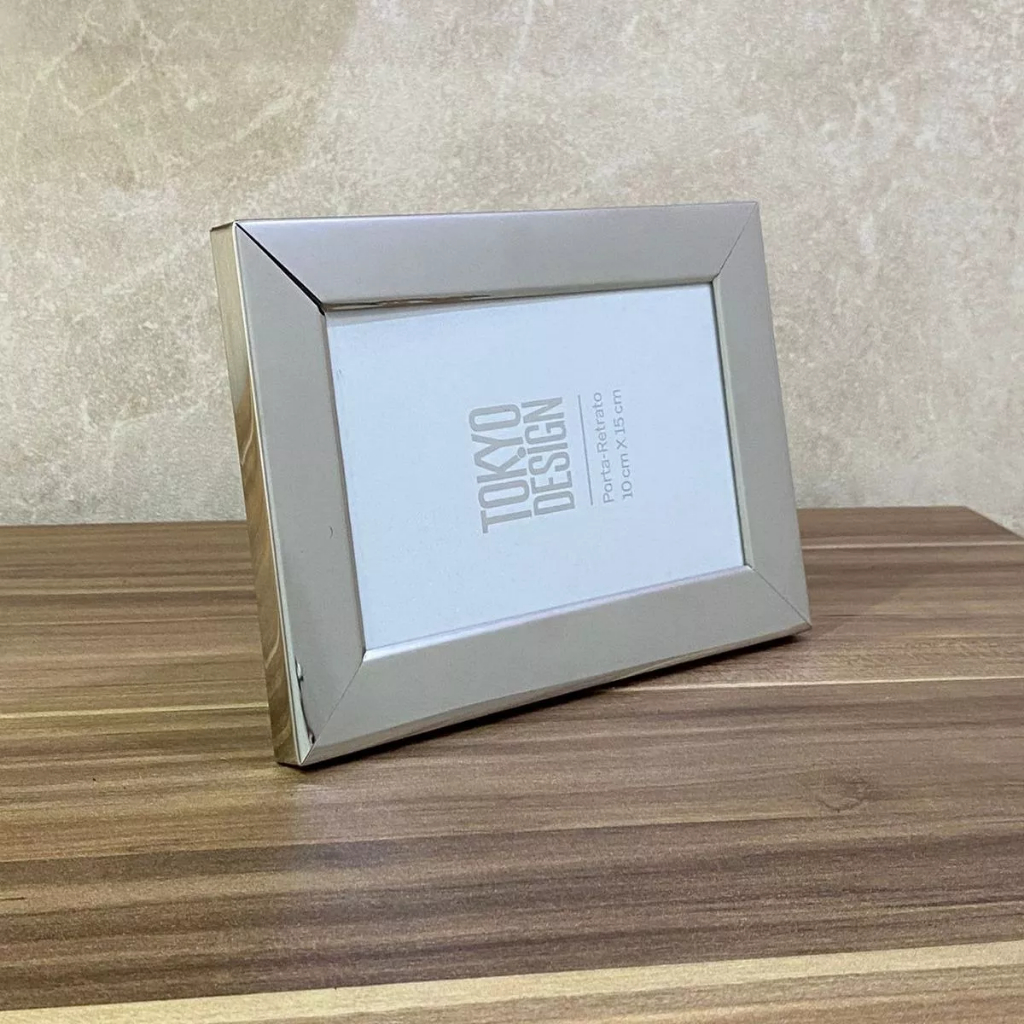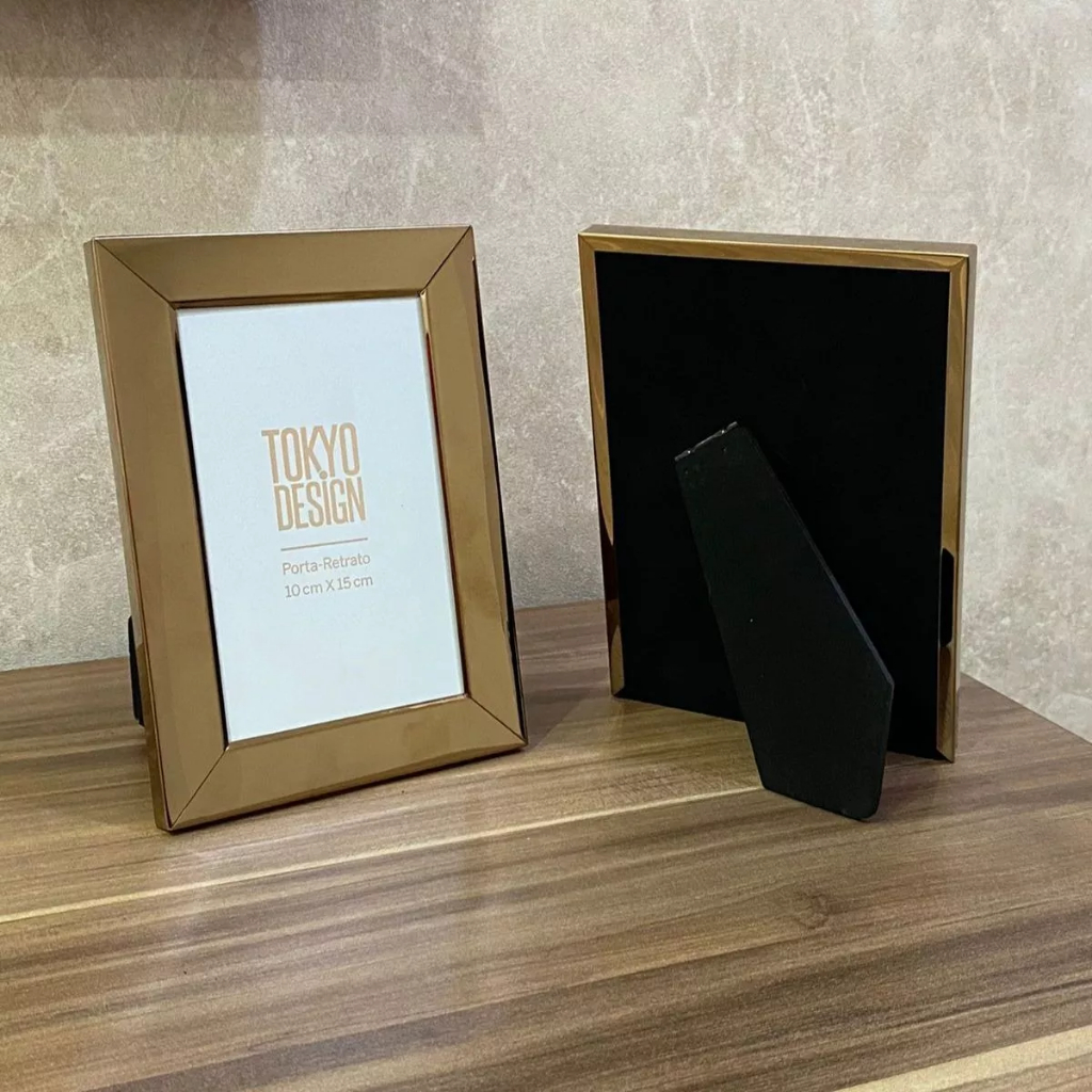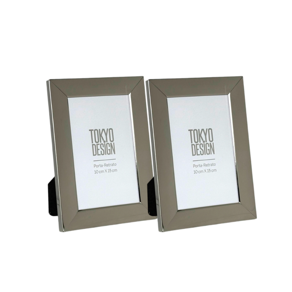Kit 2 Porta Retratos 10x15 De Aço Inox E Vidro Luxe Rose Golg / Prata / Dourado / Grafite