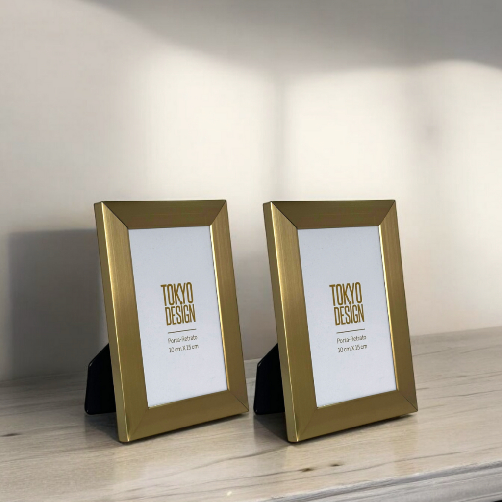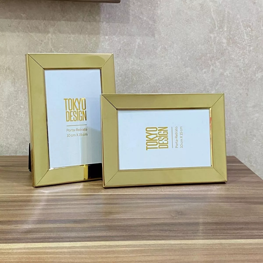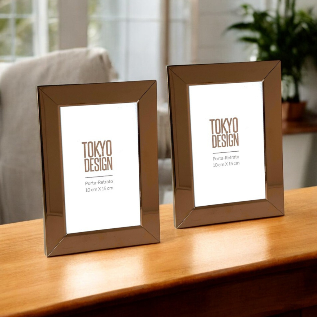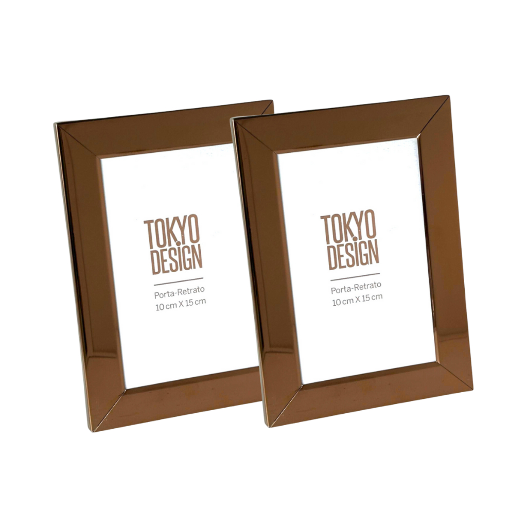 Kit 2 Porta Retratos 10x15 De Aço Inox E Vidro Luxe Rose Golg / Prata / Dourado / Grafite