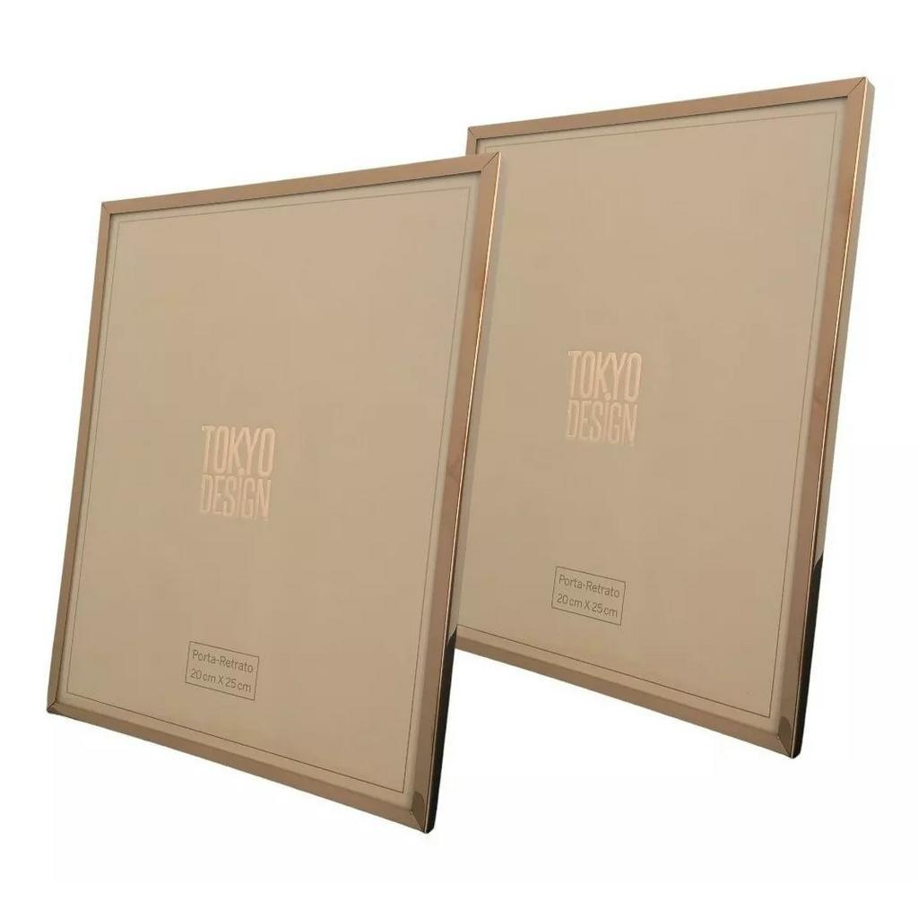Kit 2 Porta Retratos 20x25 Aço Inox Moldura Prata/Rose/Gold/Grafite