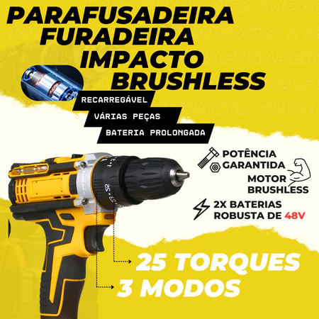 Parafusadeira Furadeira de Impacto a Bateria Recarregável Sem Fio 48v 2 Baterias Com Maleta Completo