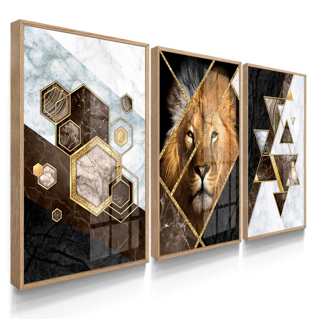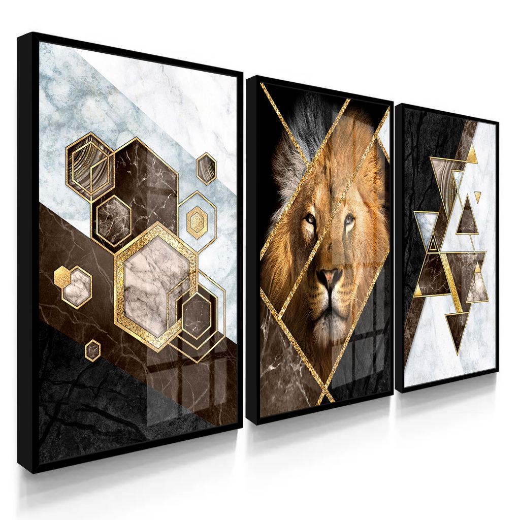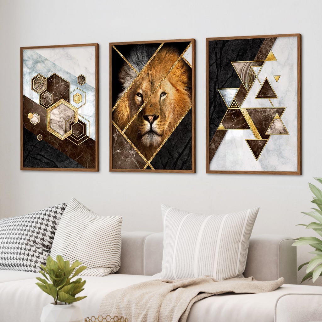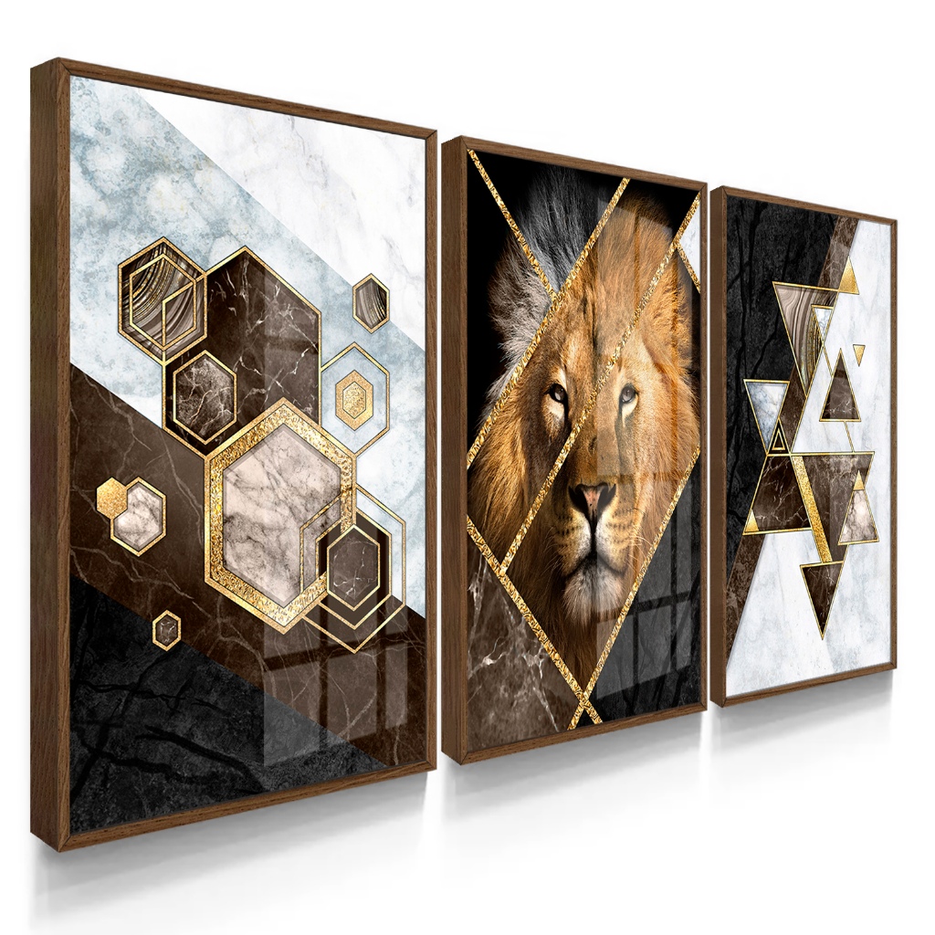 Quadros Decorativos com Moldura e Vidro Leão Abstrato Animais Sala