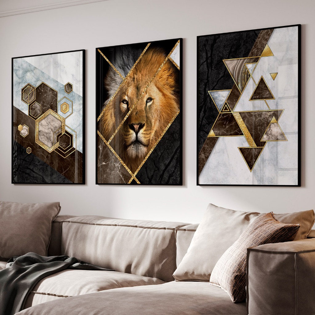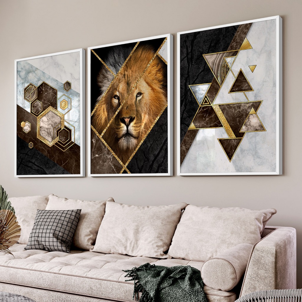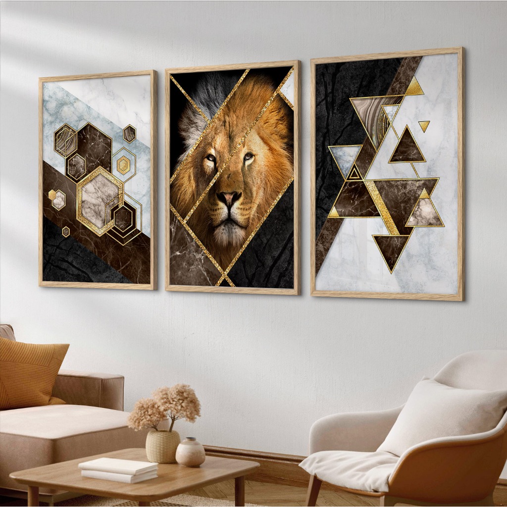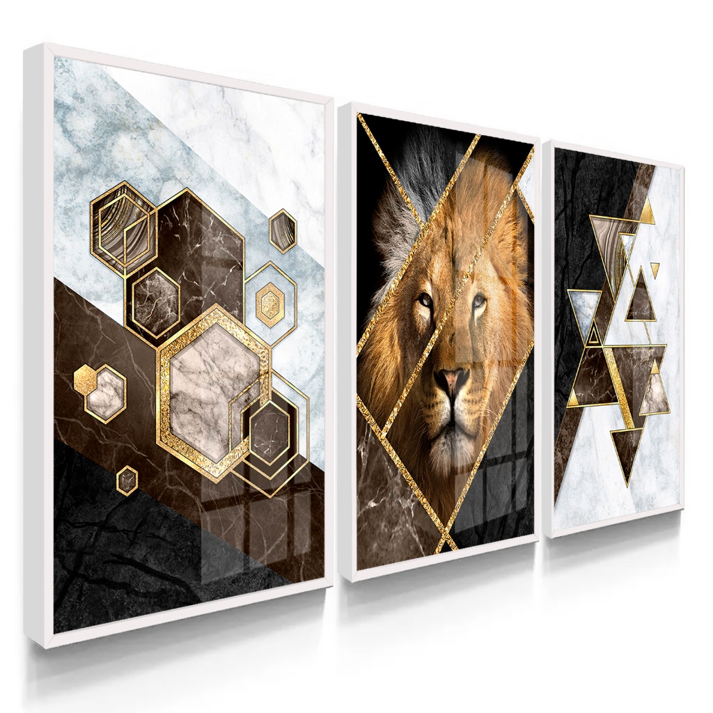 Quadros Decorativos com Moldura e Vidro Leão Abstrato Animais Sala