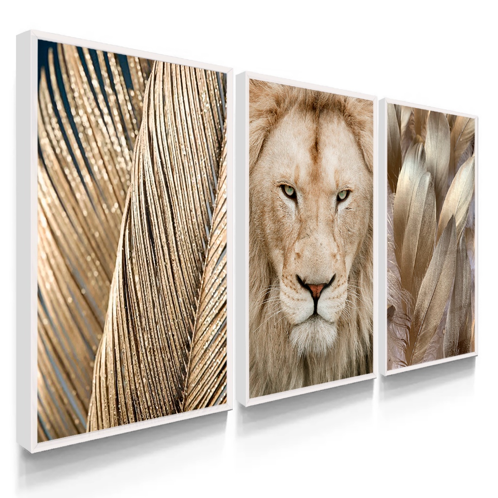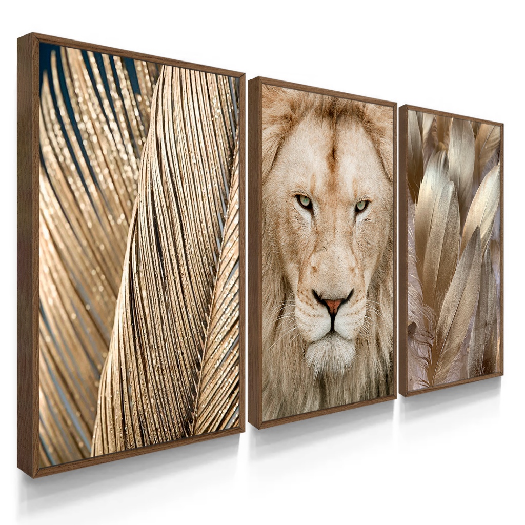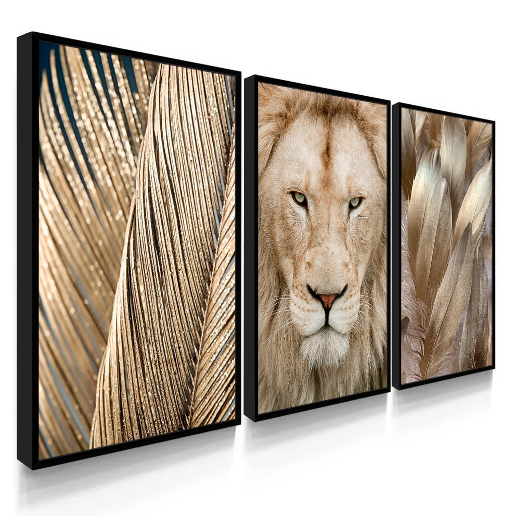 Quadros Decorativos com Molduras e Vidros Abstrato Sala Quarto Leão Platina Grande