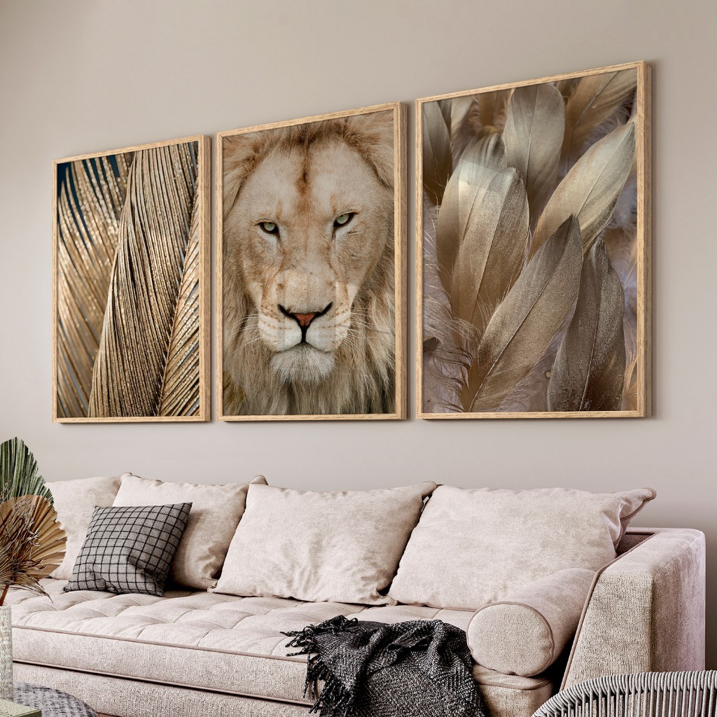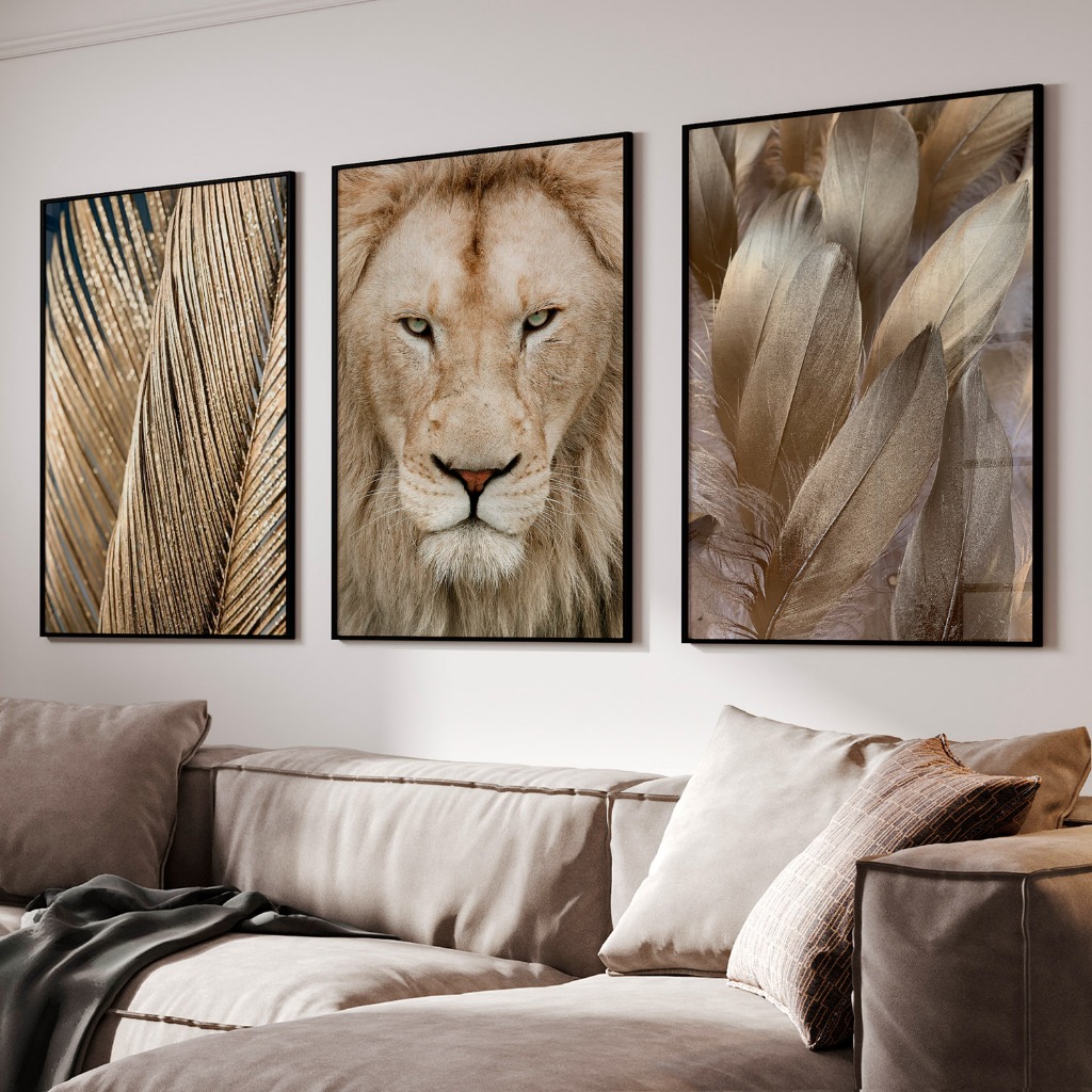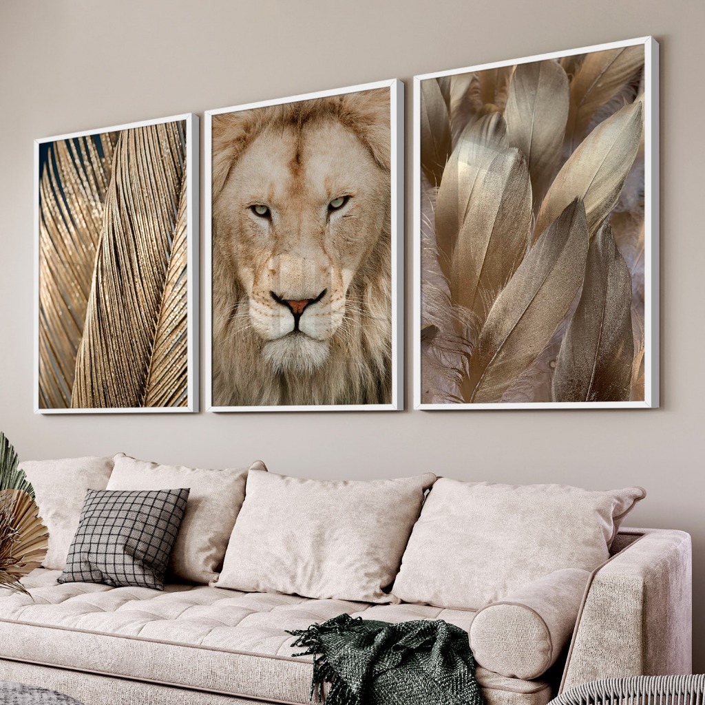 Quadros Decorativos com Molduras e Vidros Abstrato Sala Quarto Leão Platina Grande