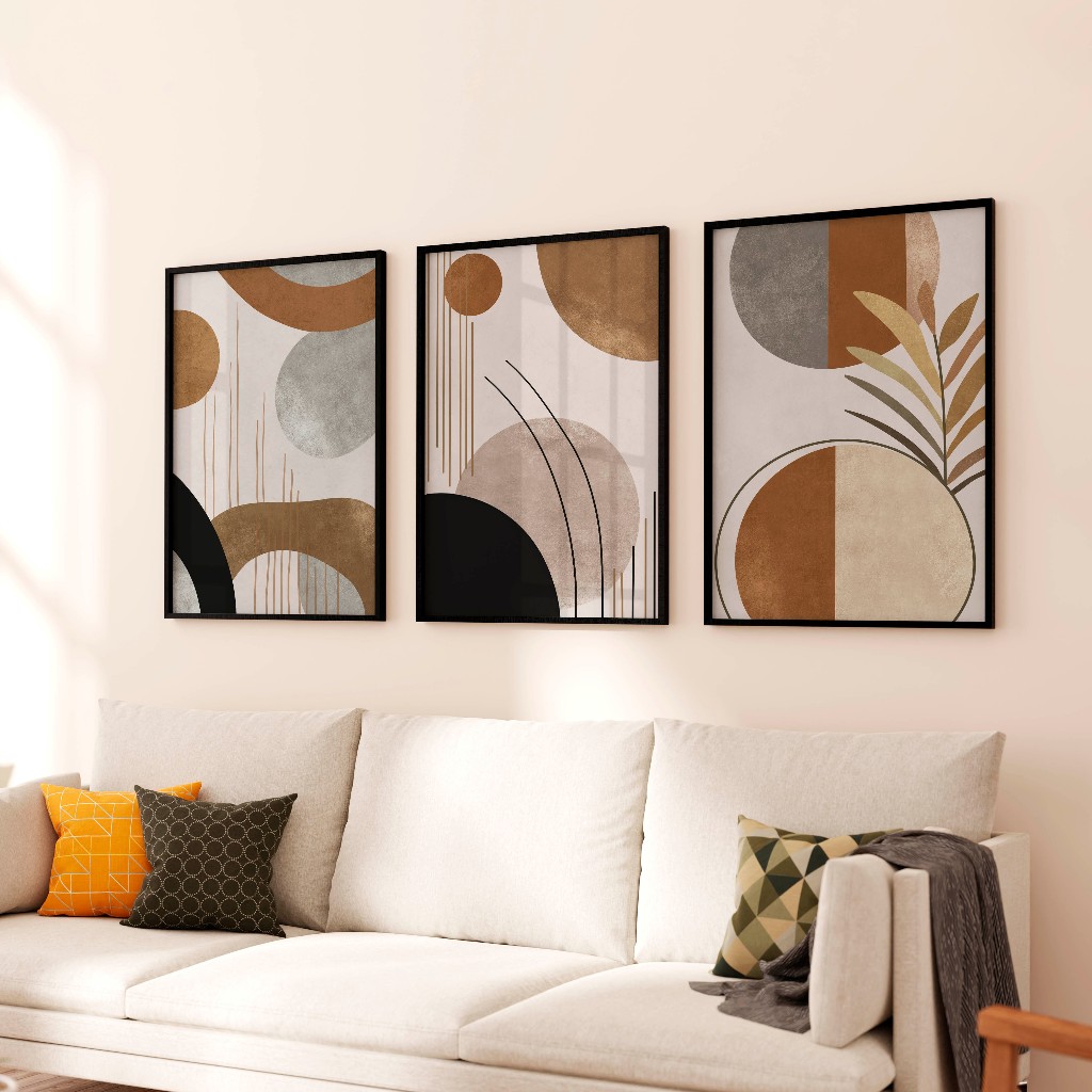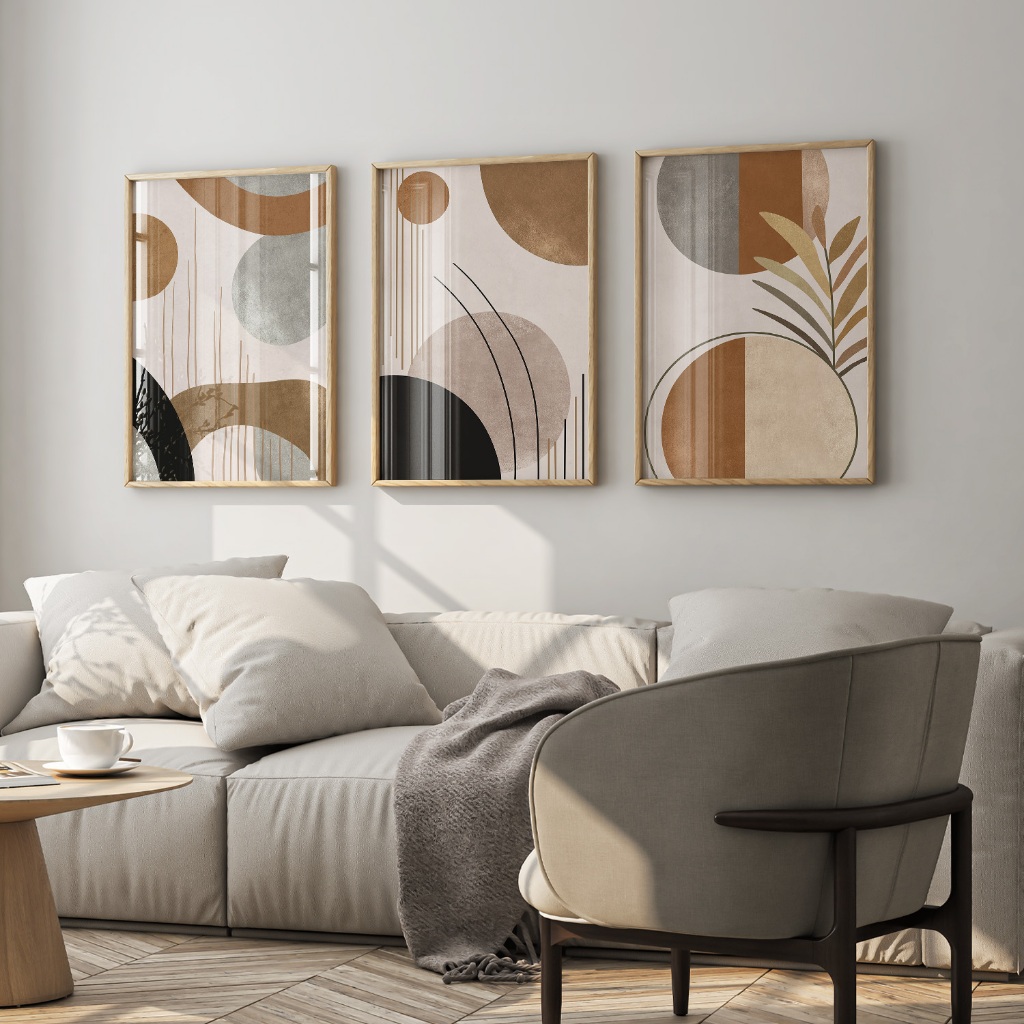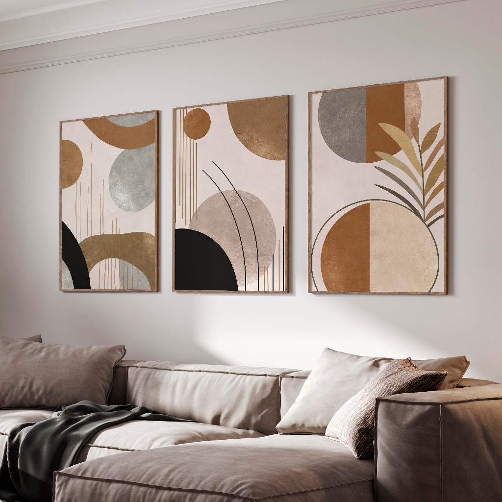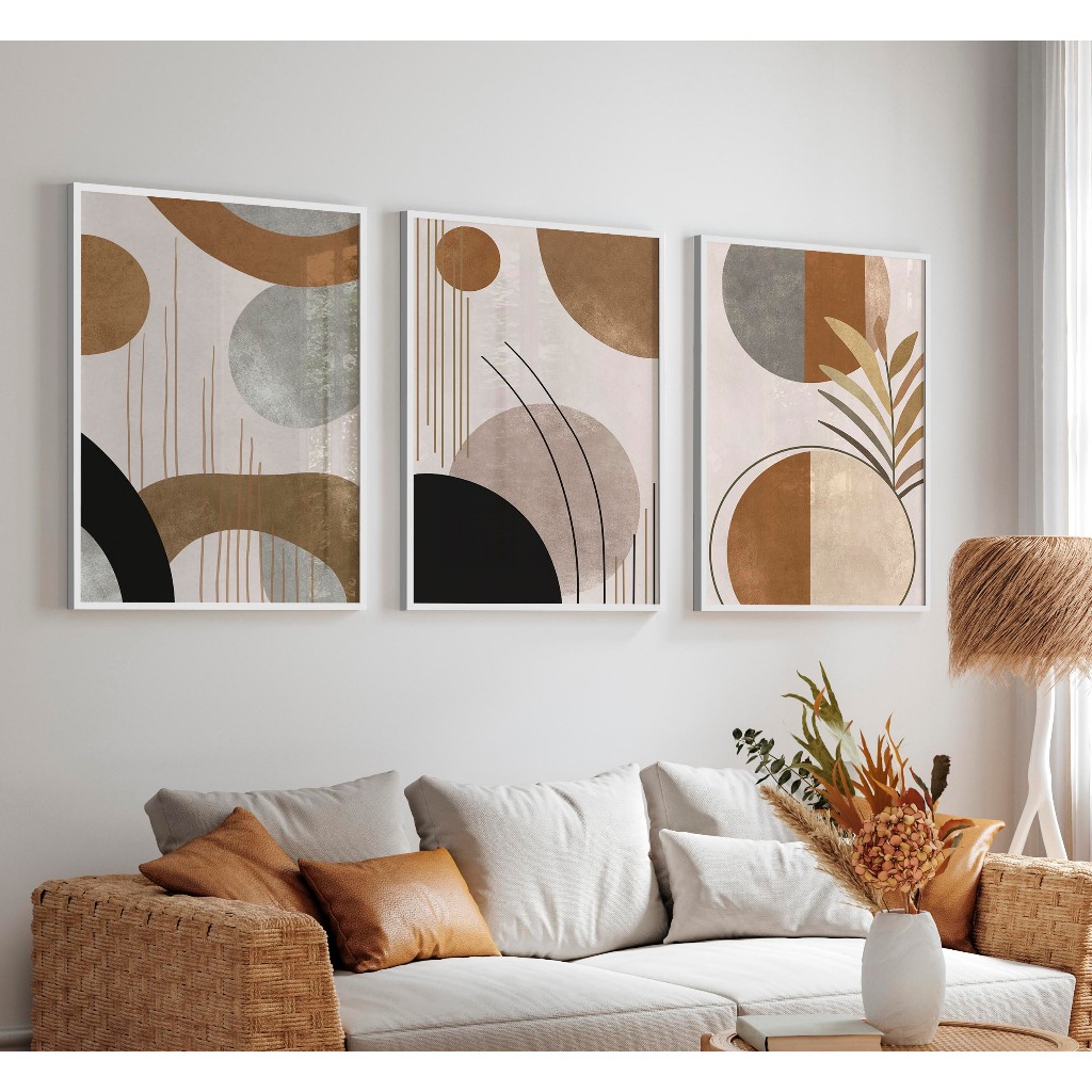 Decoreiro Quadros Decorativos Com Moldura Boho Abstrato Arte Tons Neutros