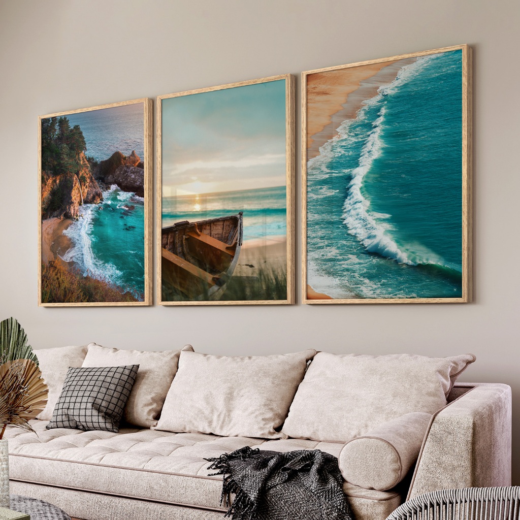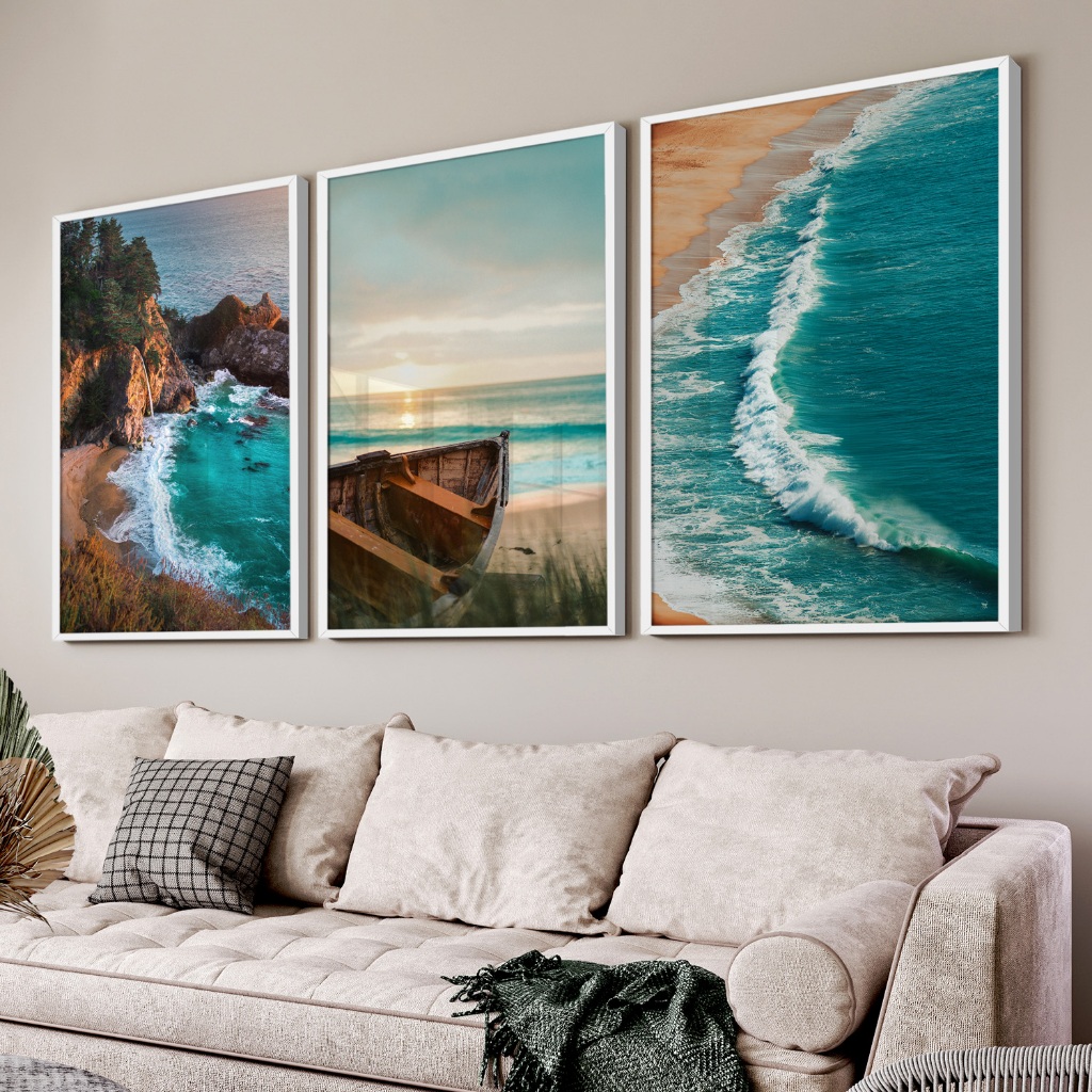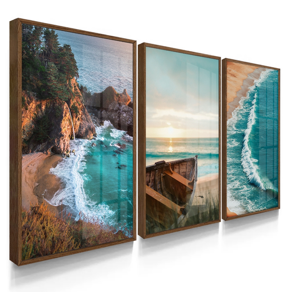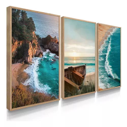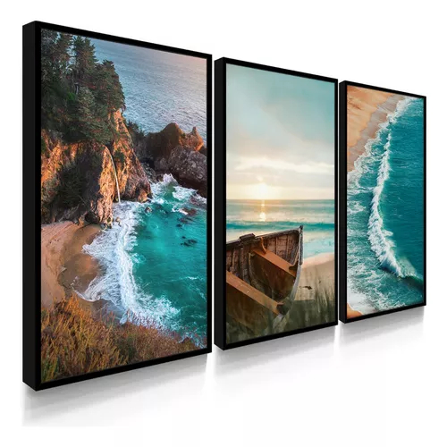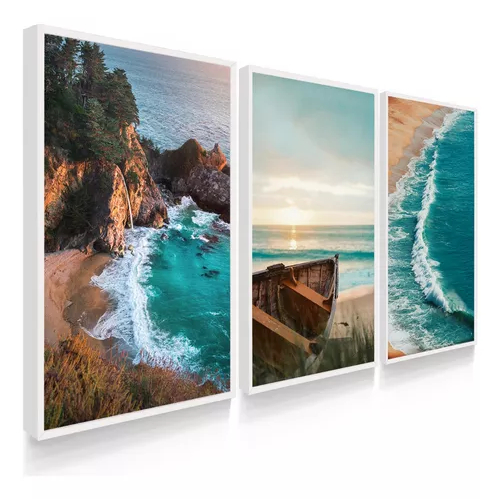 Quadros Decorativos Escritório Sala Quarto Praia Paisagem Com Moldura 55X40