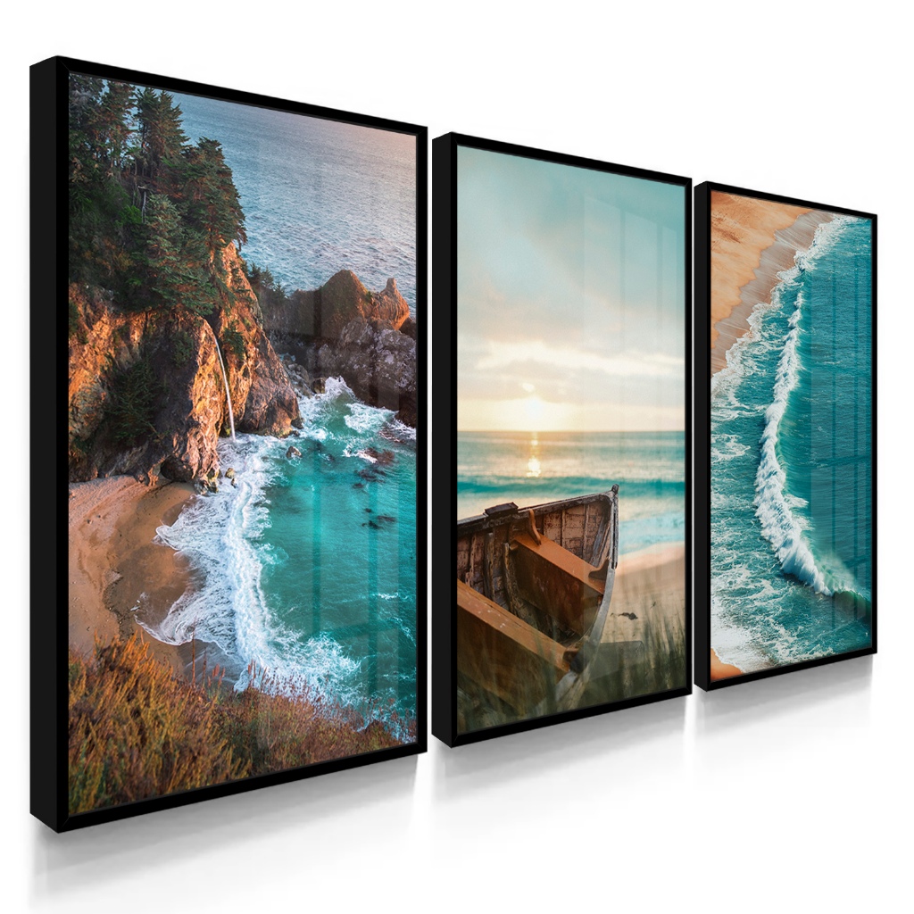 Quadros Decorativos Escritório Sala Quarto Praia Paisagem Com Vidros