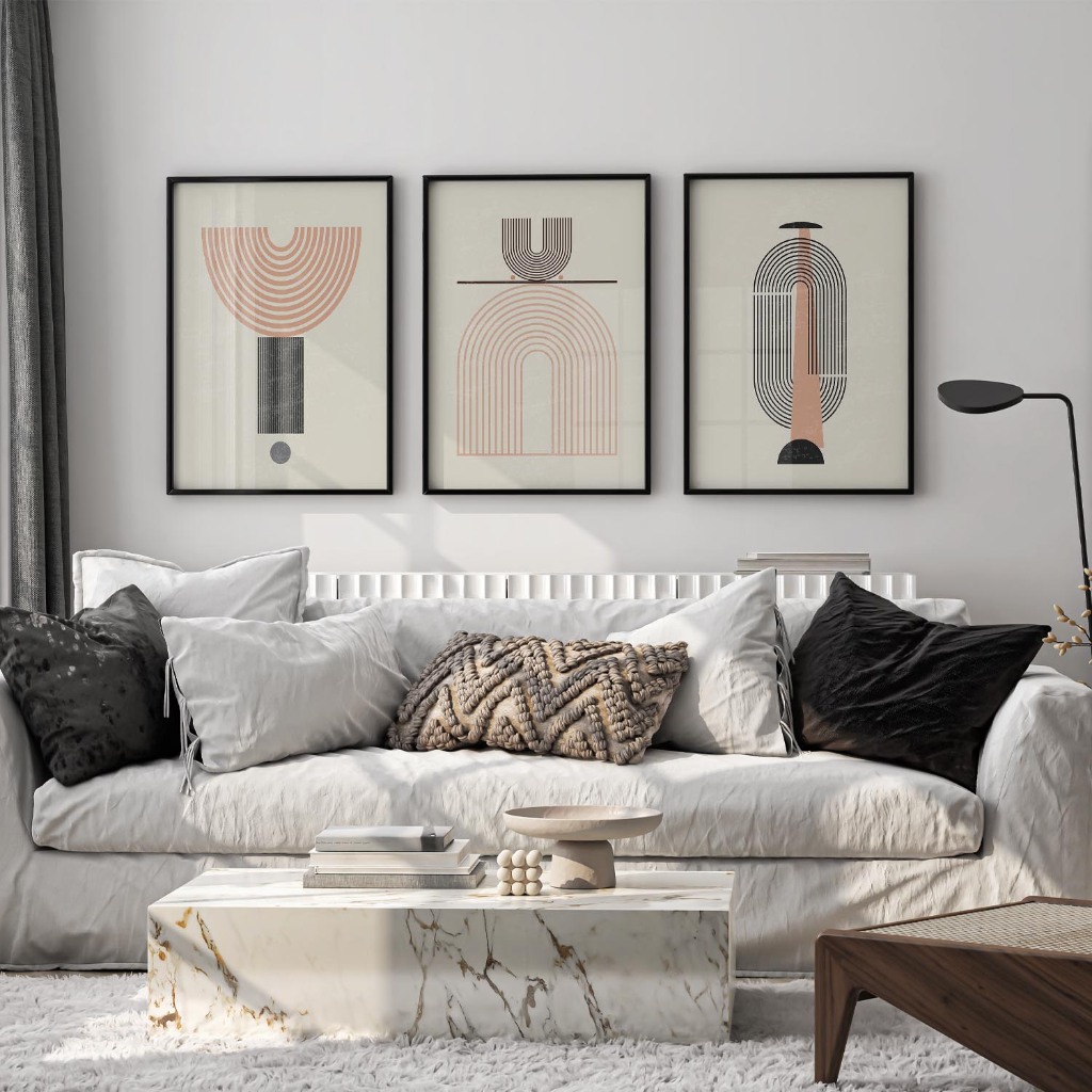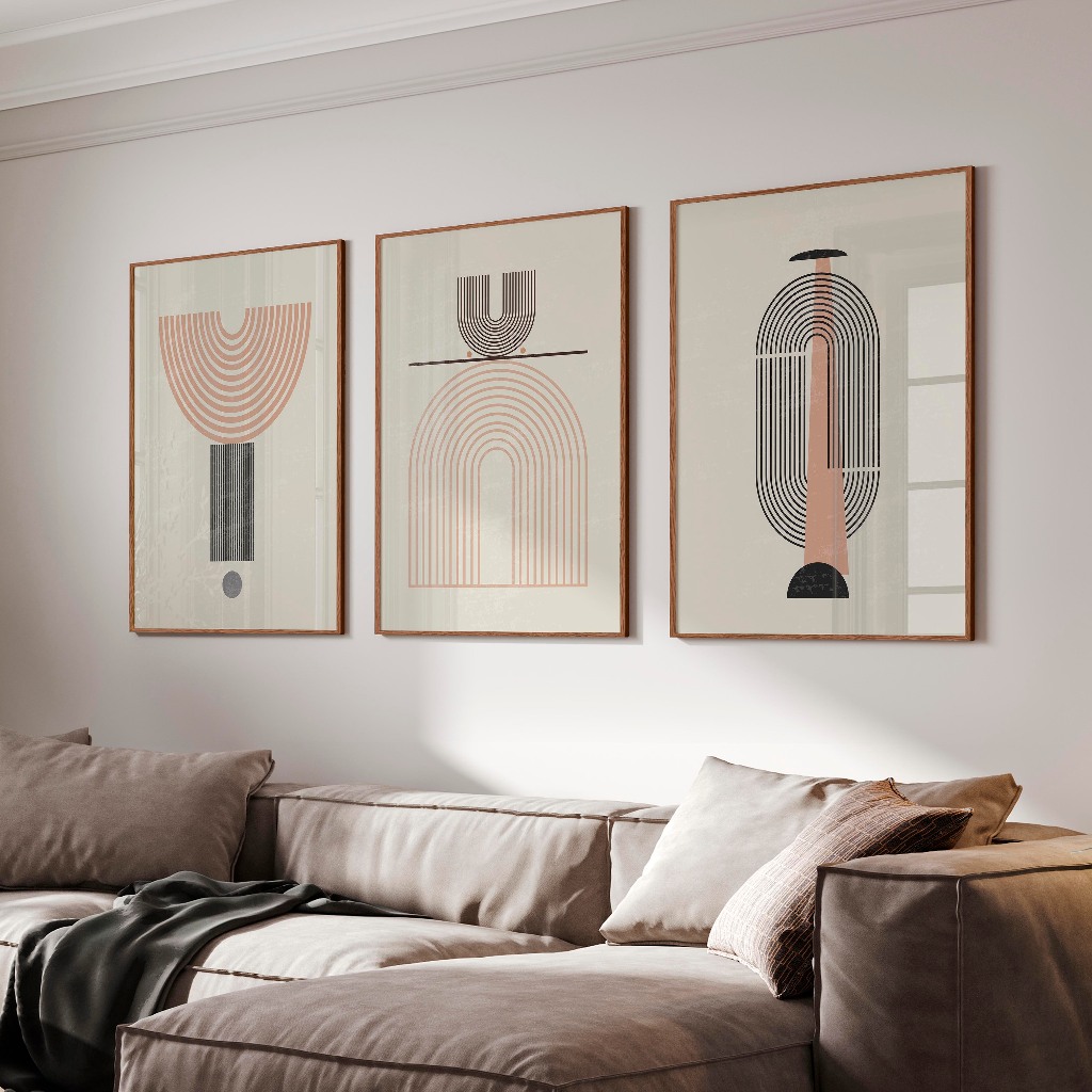 Quadros Decorativos Com Molduras Abstrato Linhas Geometrico Arte Clara Clean