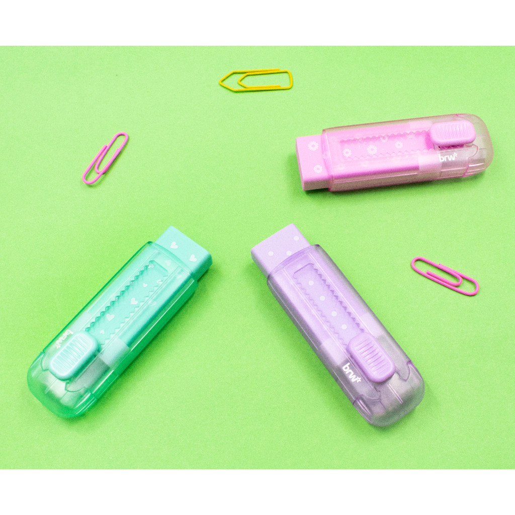 Borracha Retrátil Estampada Rosa Lilás E Verde Escolar Brw - UNIDADE
