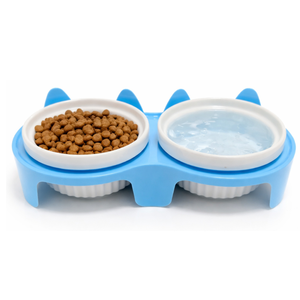 Comedouro Bebedouro duplo elevado tigela ceramica Orelinhas Caes Gatos Pets