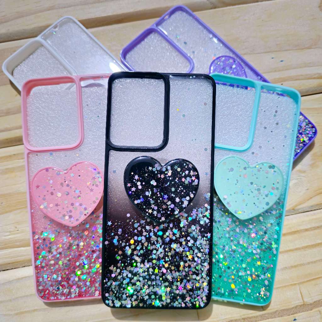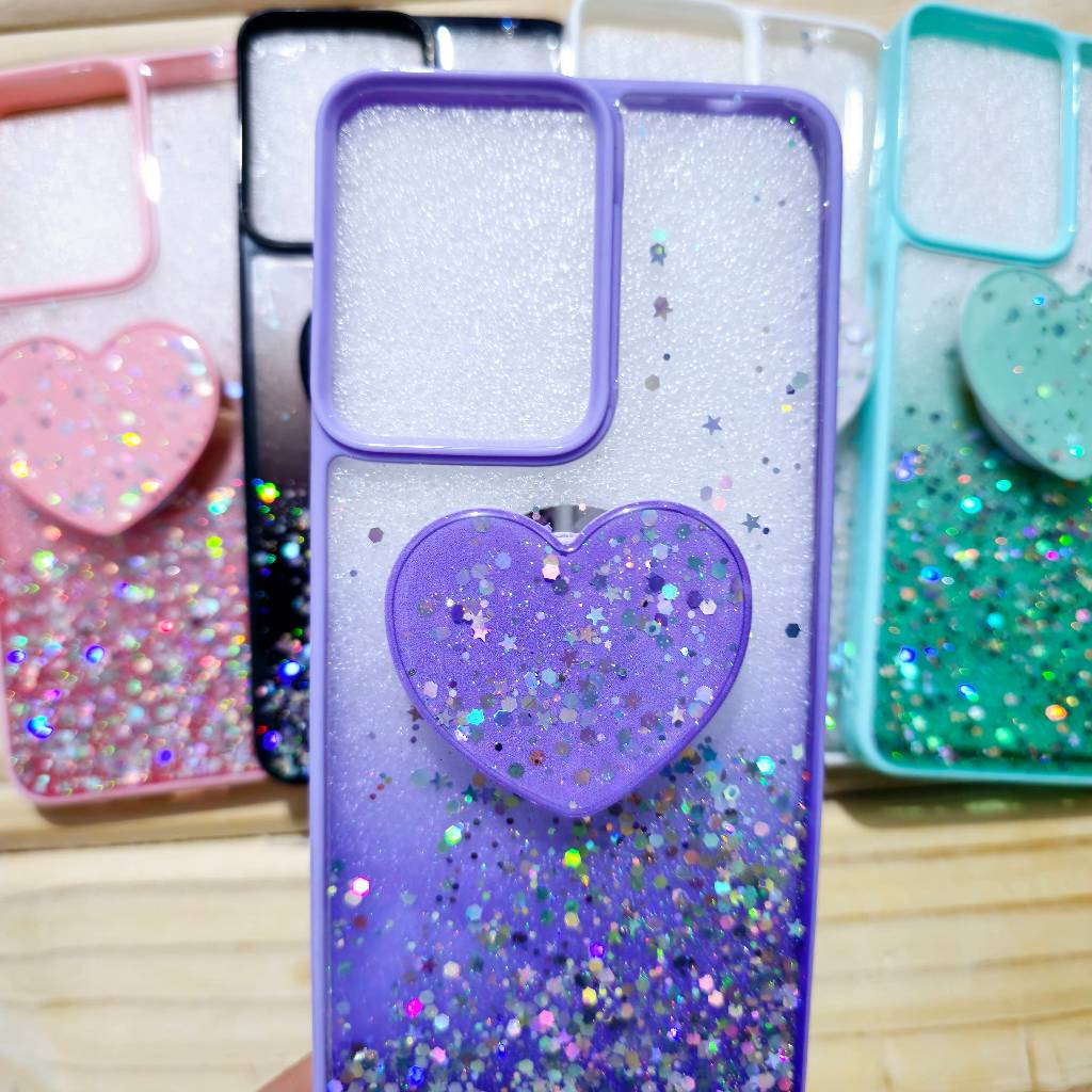 Capa capinha silicone com suporte de coração para motorola Moto G05 G06 G15 G35 G75 G56 G86 E15 EDGE 60 FUSION EDGE 60