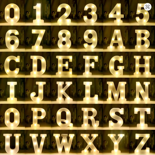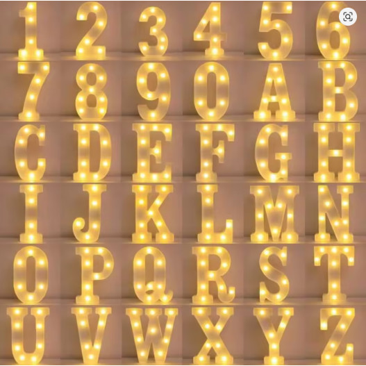 Letra Led E Numero Led Luminária 3D Decorativa Branco Altura De 16CM OU 21CM Luz Branco Quente