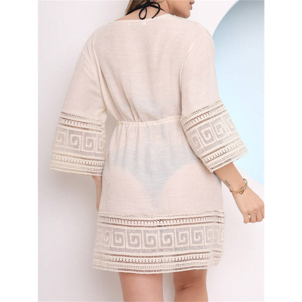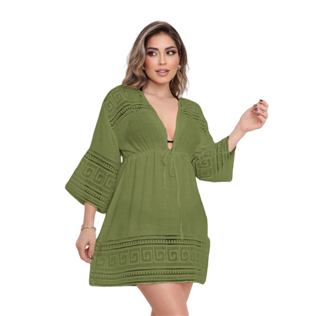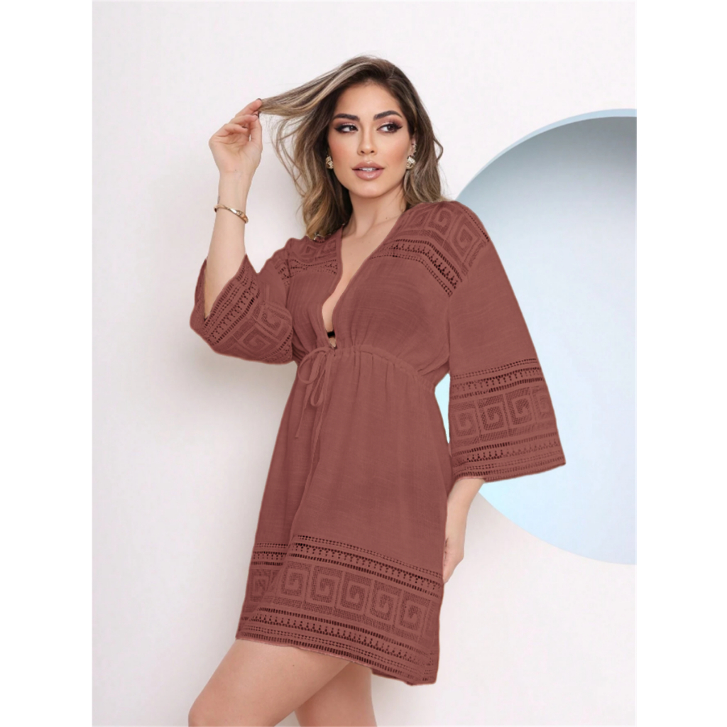 Saída de Praia Feminina Curta Kimono com Renda e Amarração
