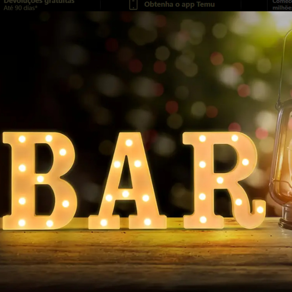 Kit 3 Letra Led Formado B A R Luz Branco Quente 16 OU 21 CM