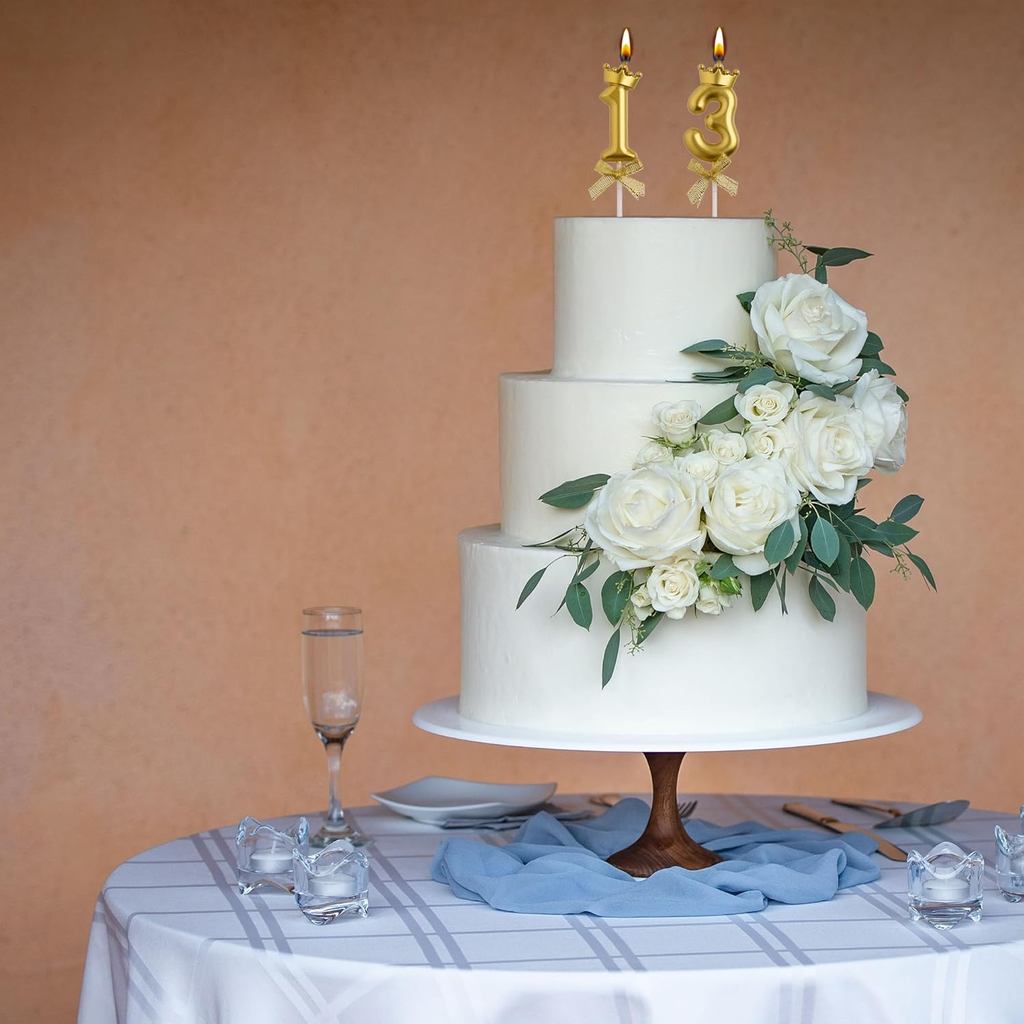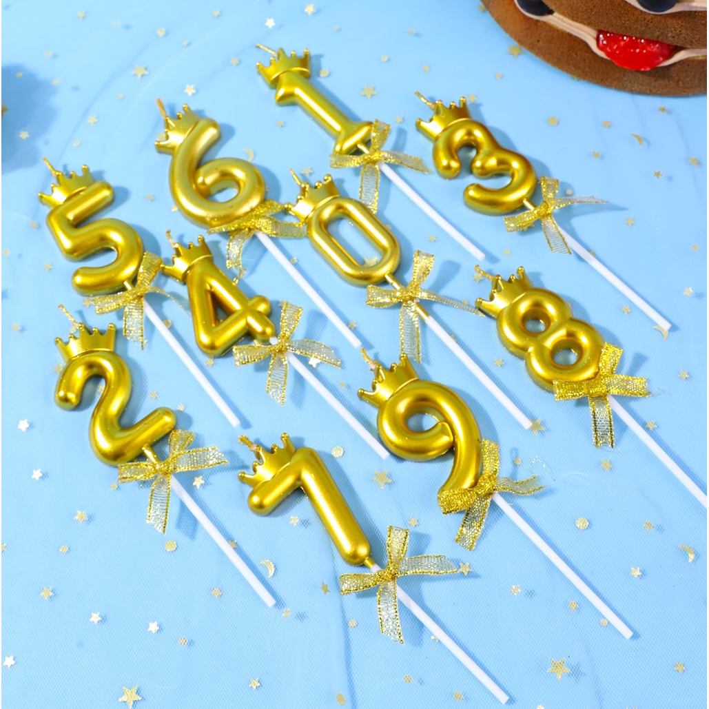 2 Vela de Aniversário Número Coroa Dourado Palito com Laço