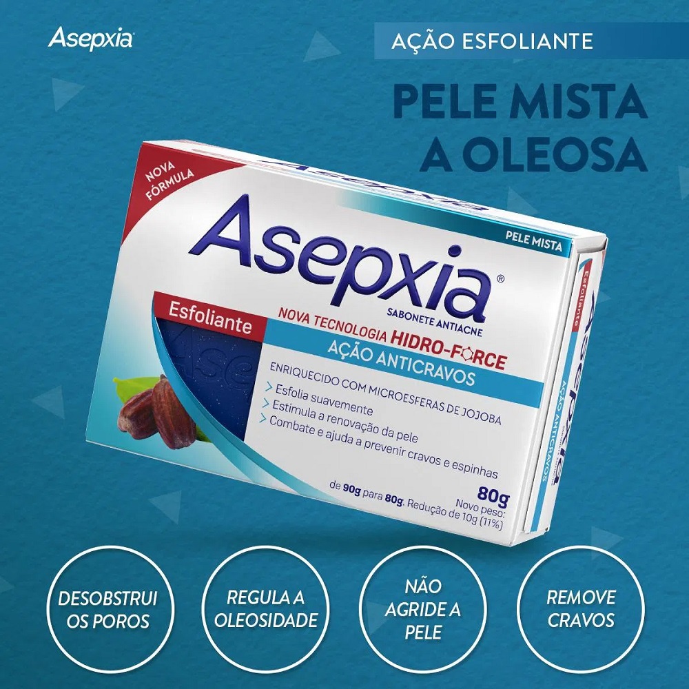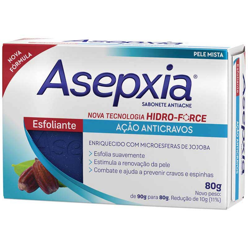 Asepxia sabonete esfoliante anticravos 80g azul pele mista renova a pele