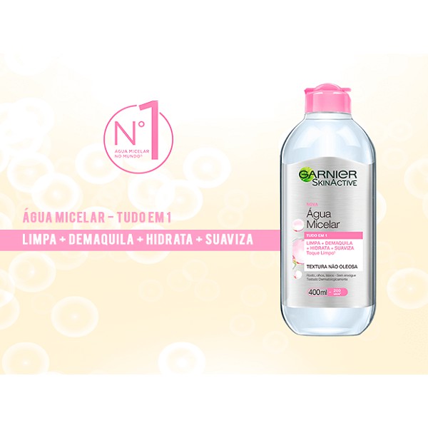 Agua Garnier micelar tudo em um limpa demaquila maquiajem 400mL rosa cravos