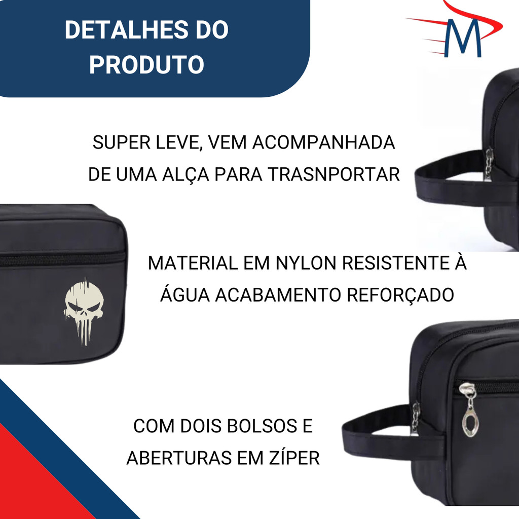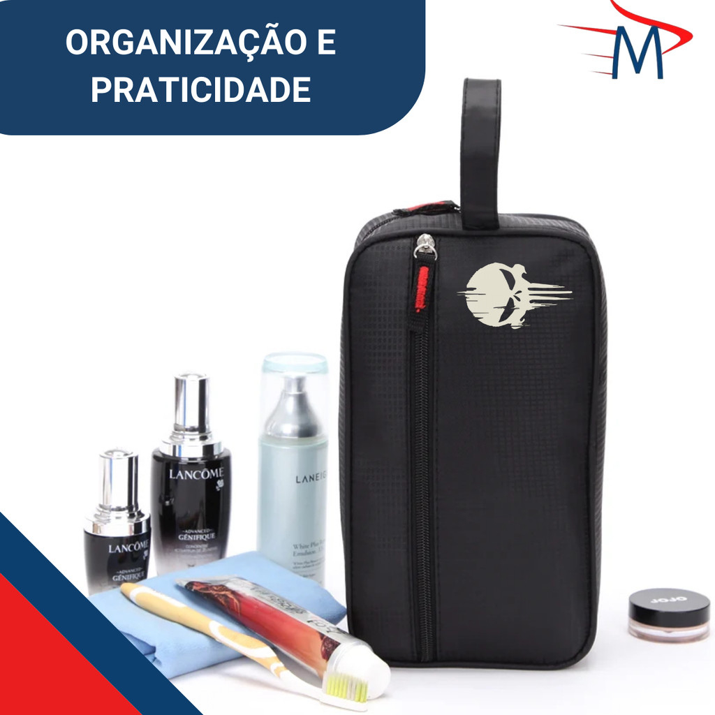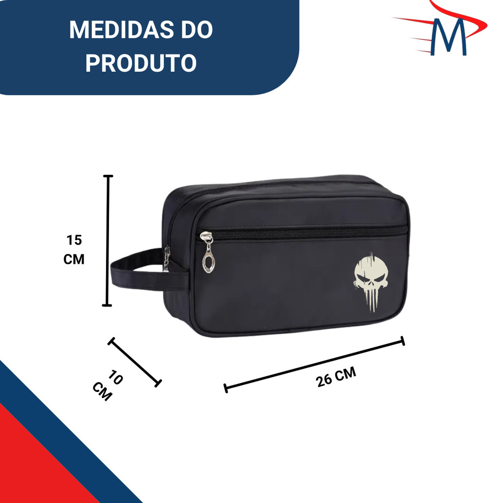 Kit Conjunto Nécessaire Nylon C/Carteira e estojo Caveira