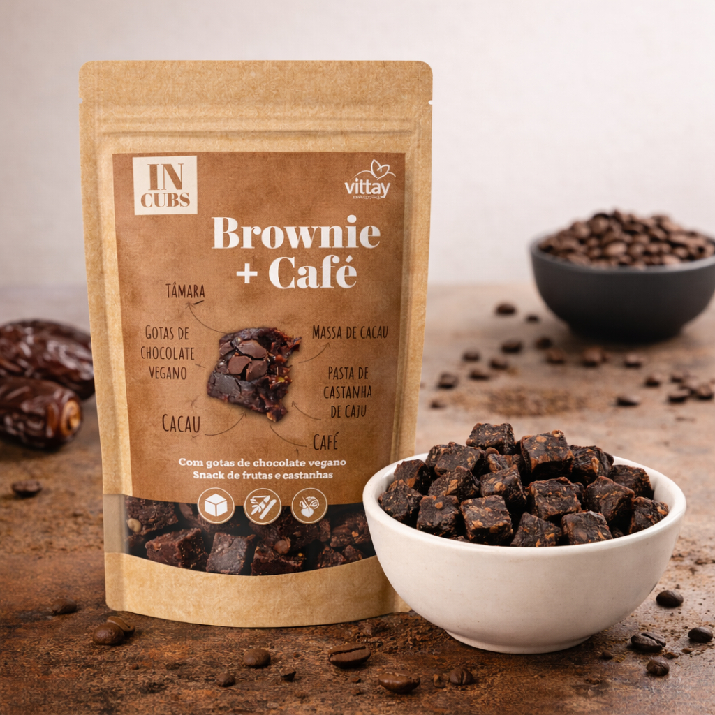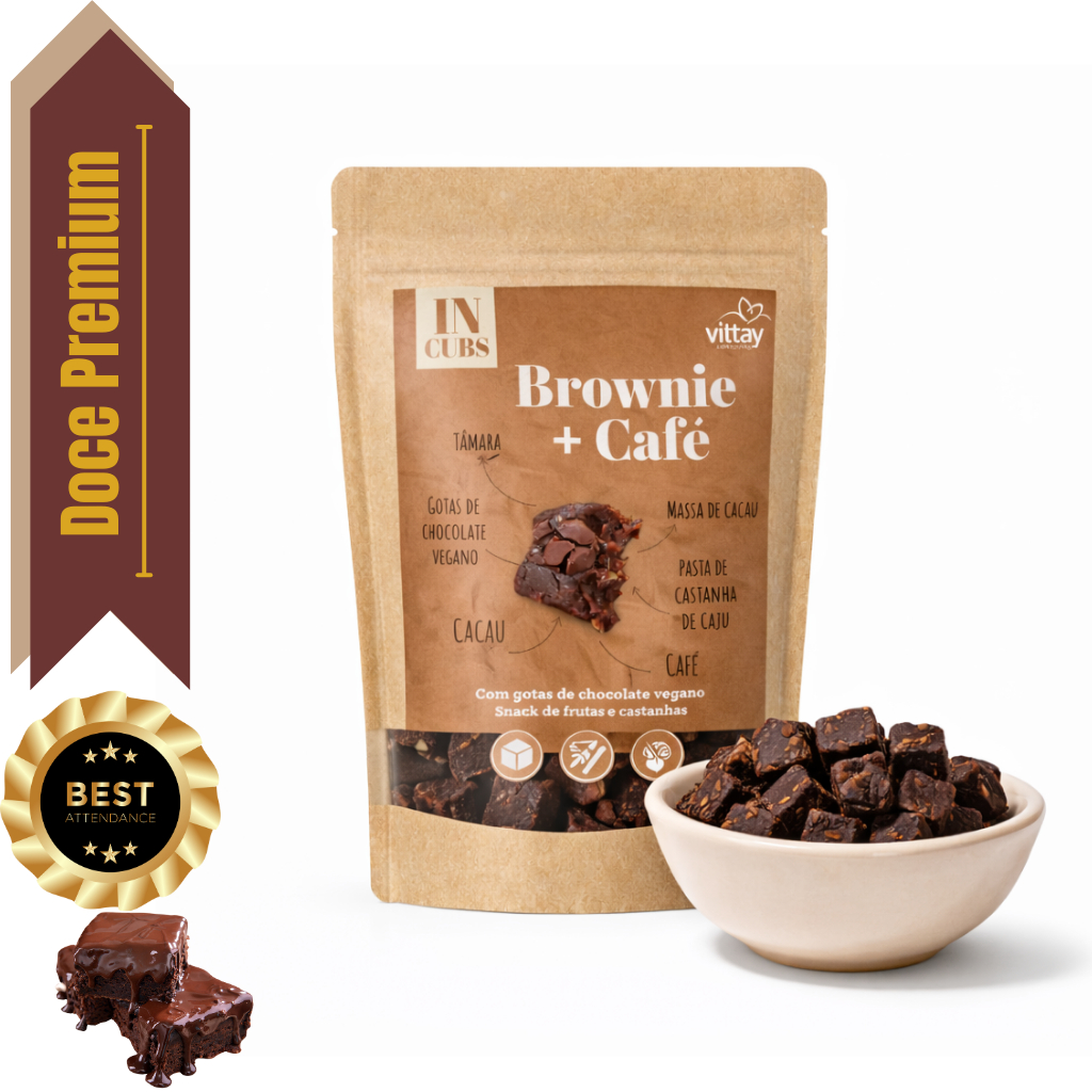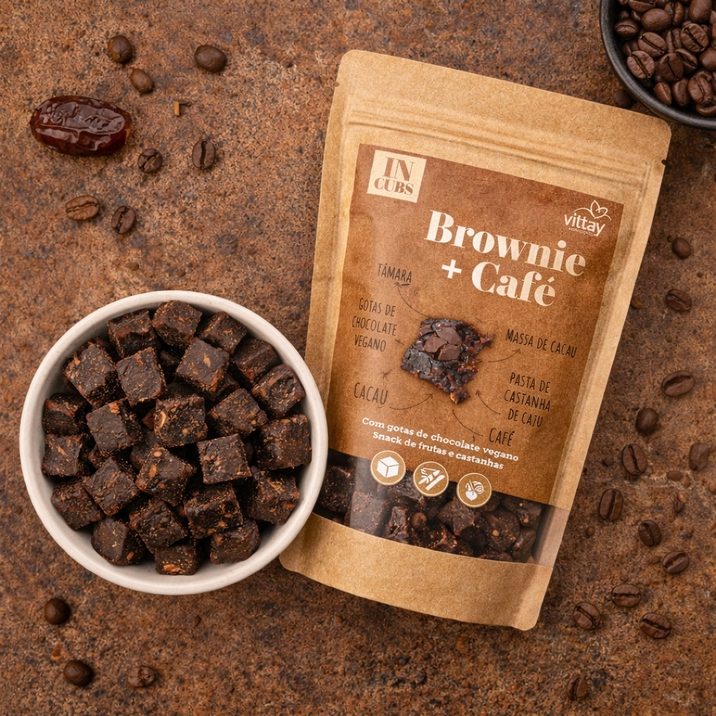 Doce fit - Brownie com Café e gotas de chocolate - Tâmara - Sem Adição de Açúcar e lactose - Vittay