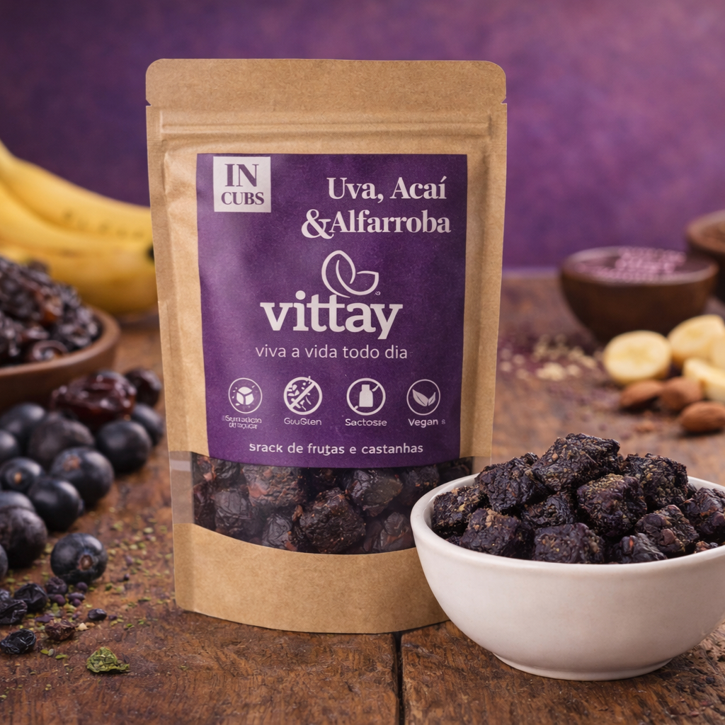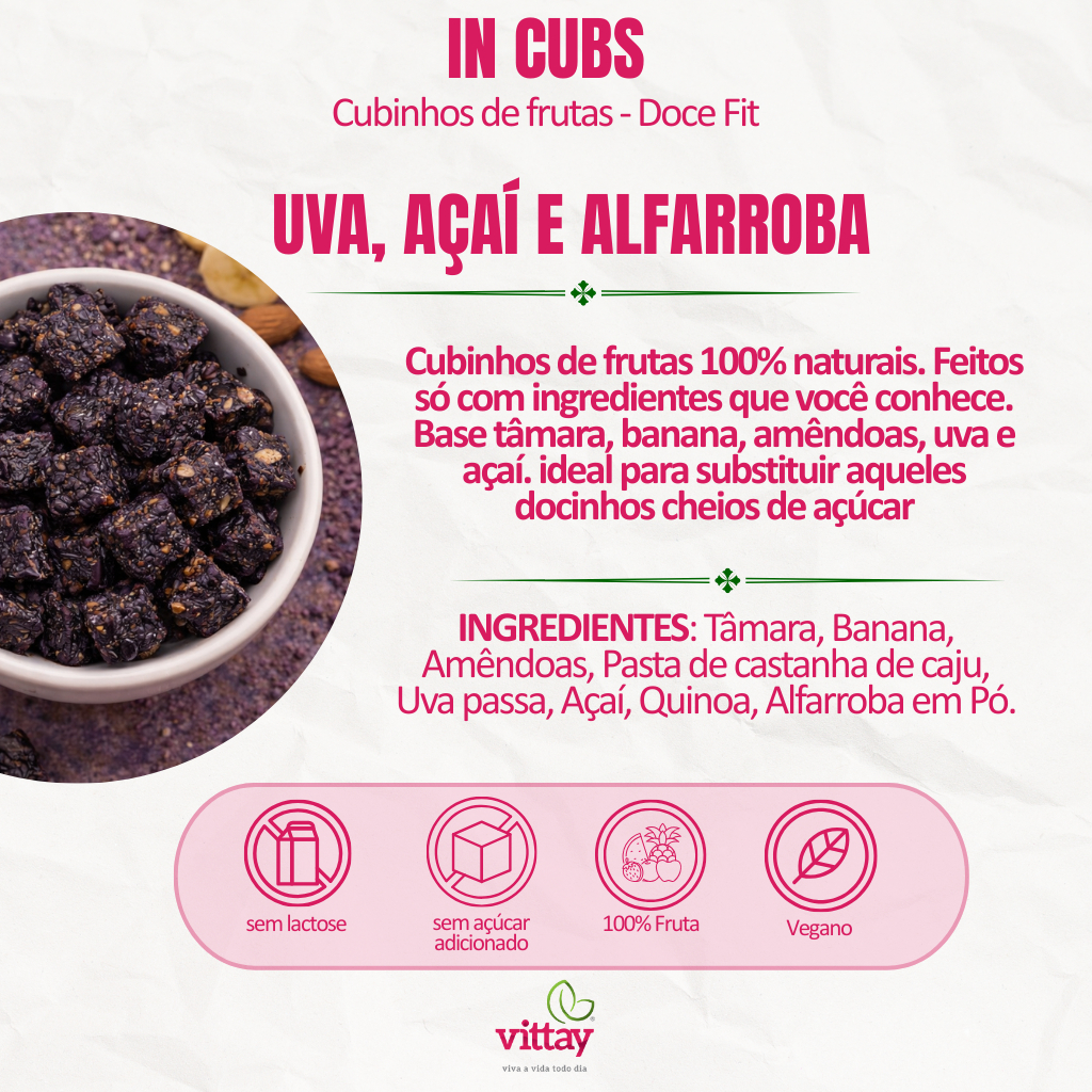 Doce fit - Frutas em Cubo IN CUBS Vittay - Tâmara, Açaí e Alfarroba - Sem Adição de Açúcar