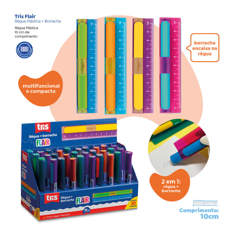 REGUA E BORRACHA FLAIR 10CM - TRIS