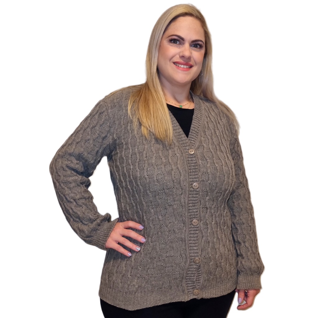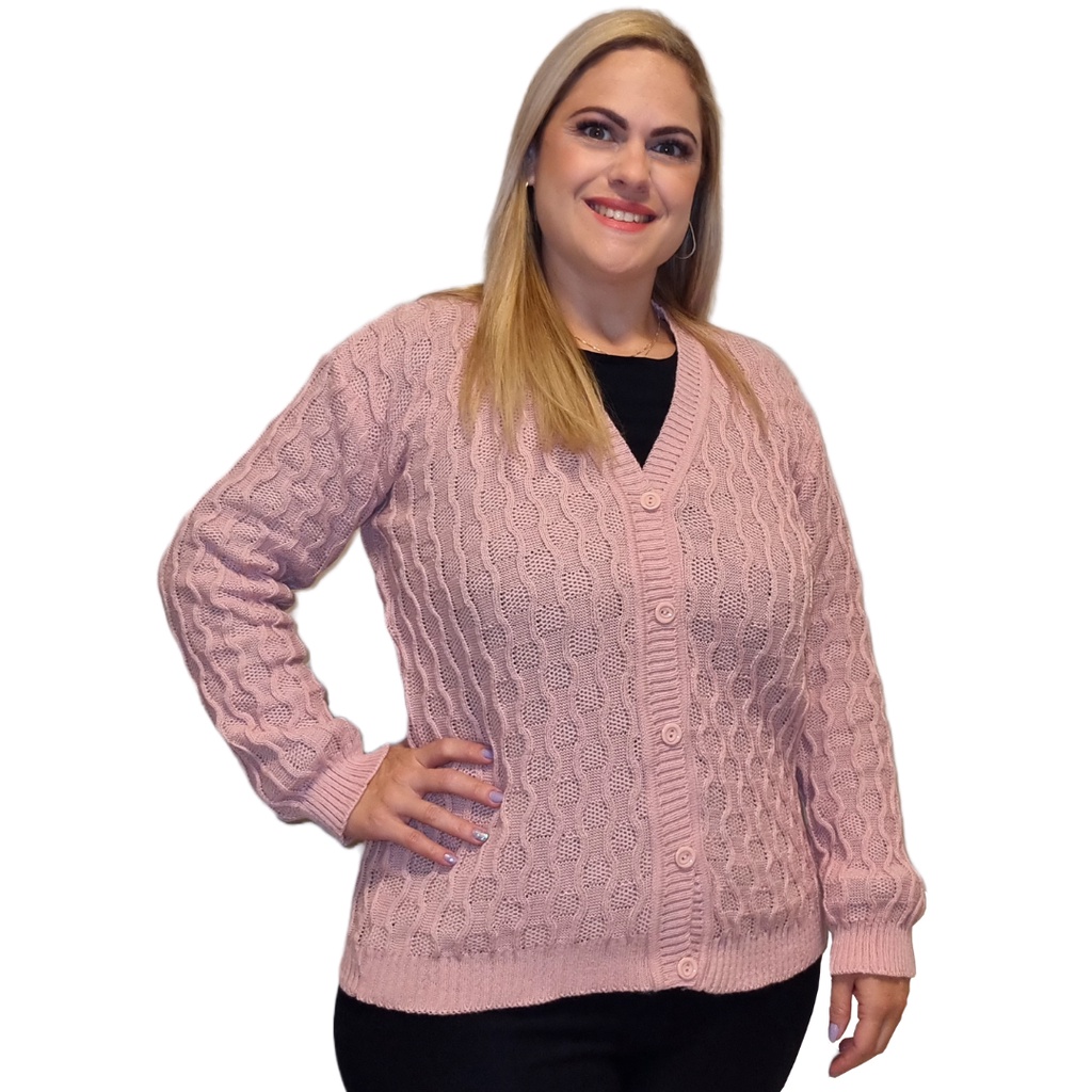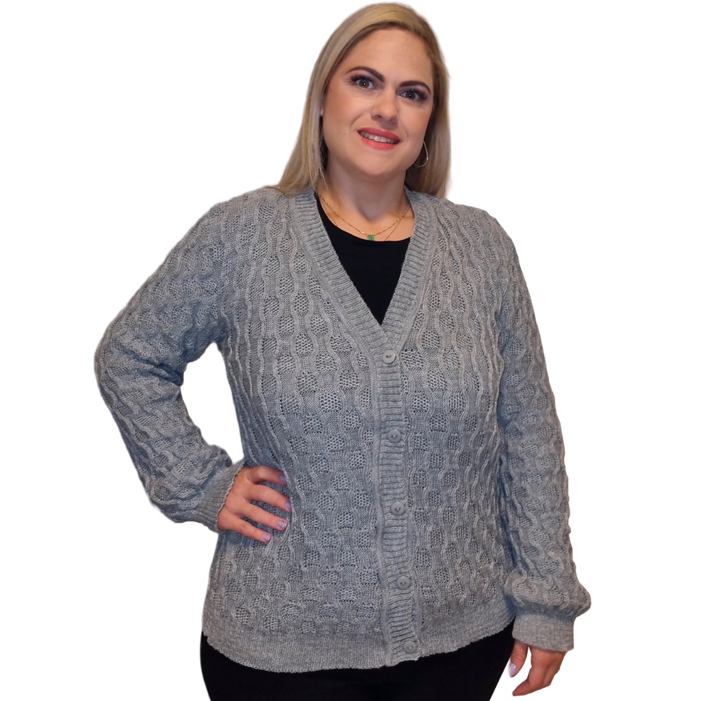Casaco Lã Suéter Feminino Inverno Plus Size Gola V Botões