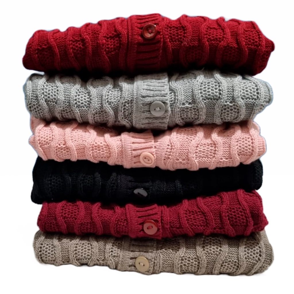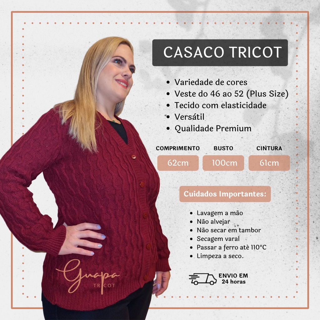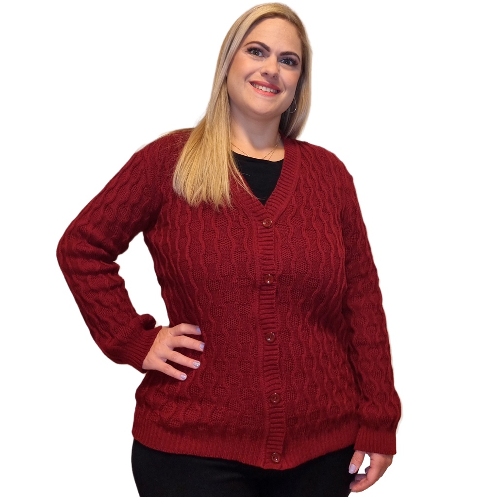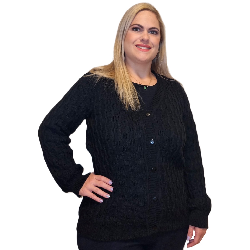 Casaco Lã Suéter Feminino Inverno Plus Size Gola V Botões
