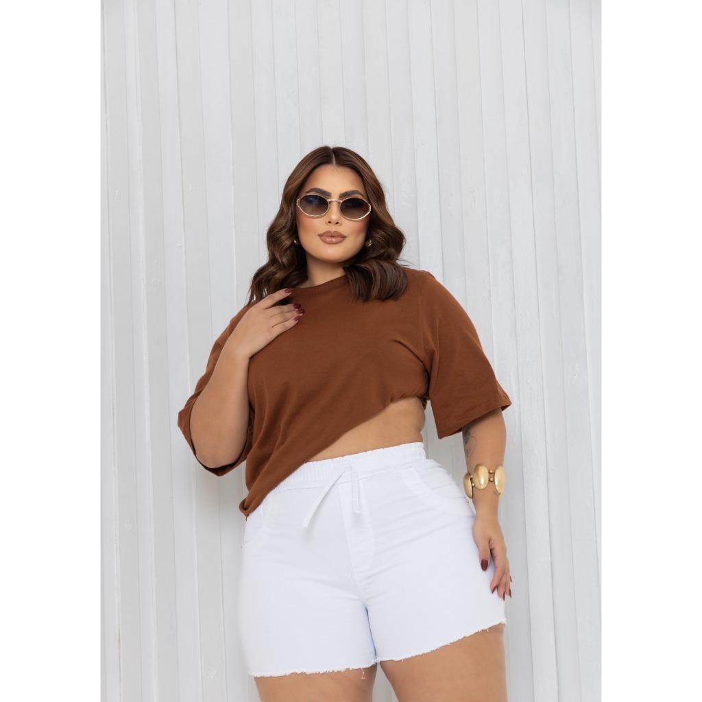 Short Jeans Elastico Plus Size De Cós Alto