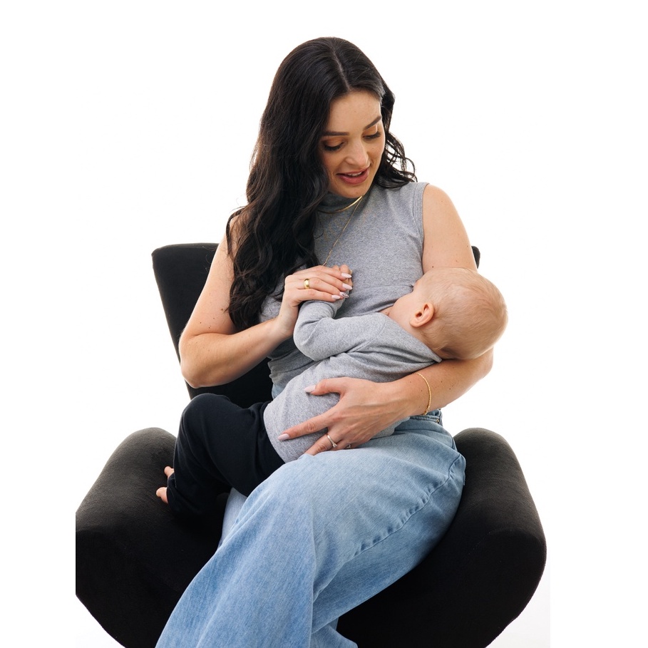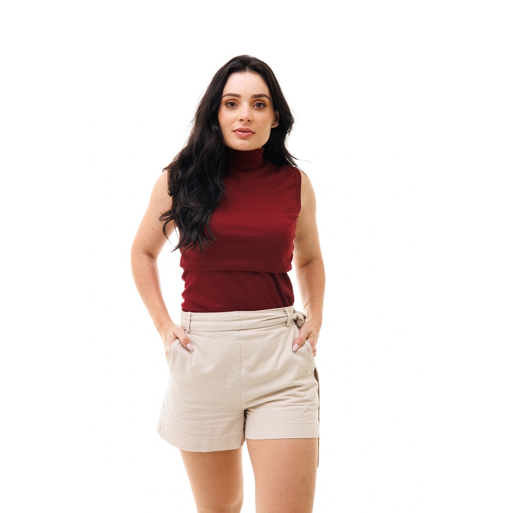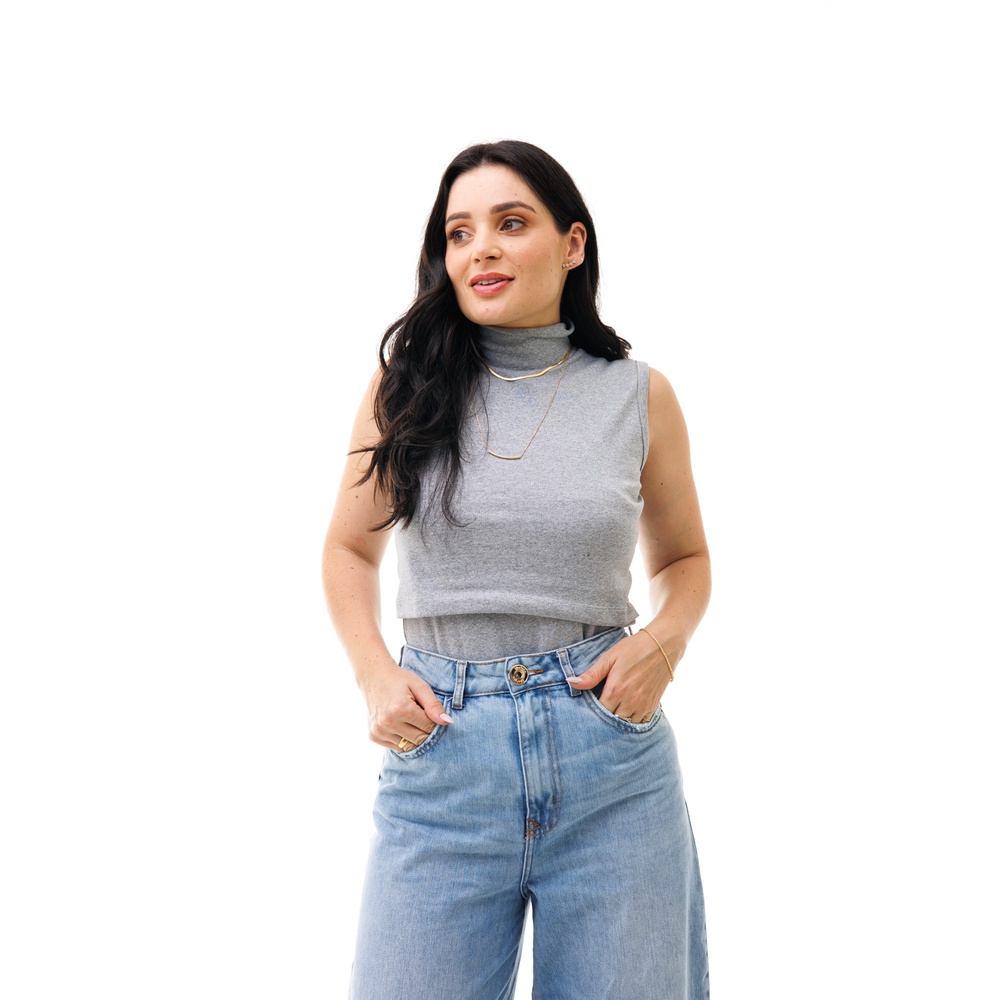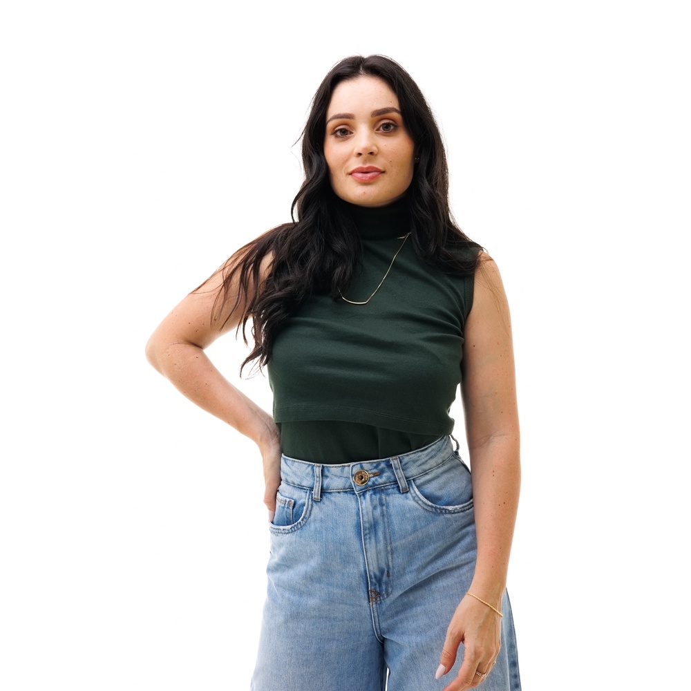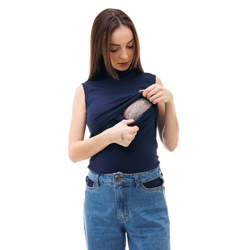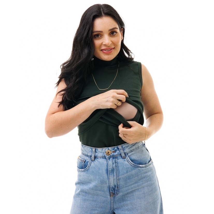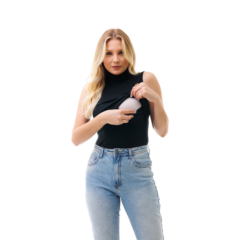 CAMISETA FEMININA COM GOLA ALTA SEM MANGA E ABERTURA PARA AMAMENTAÇÃO - VÁRIAS CORES