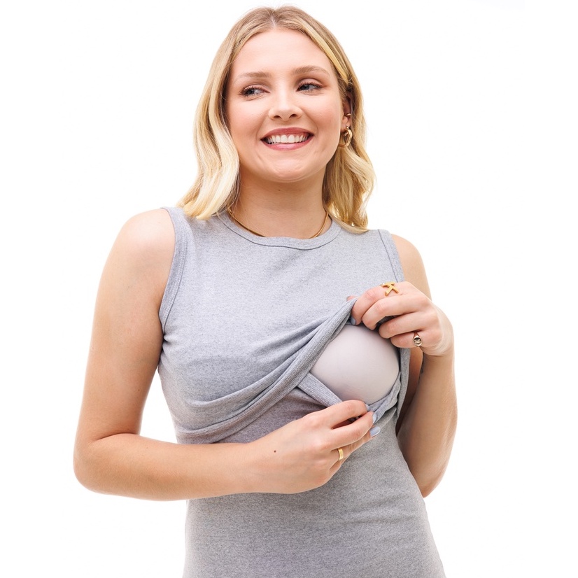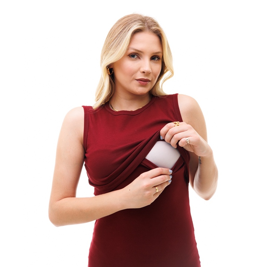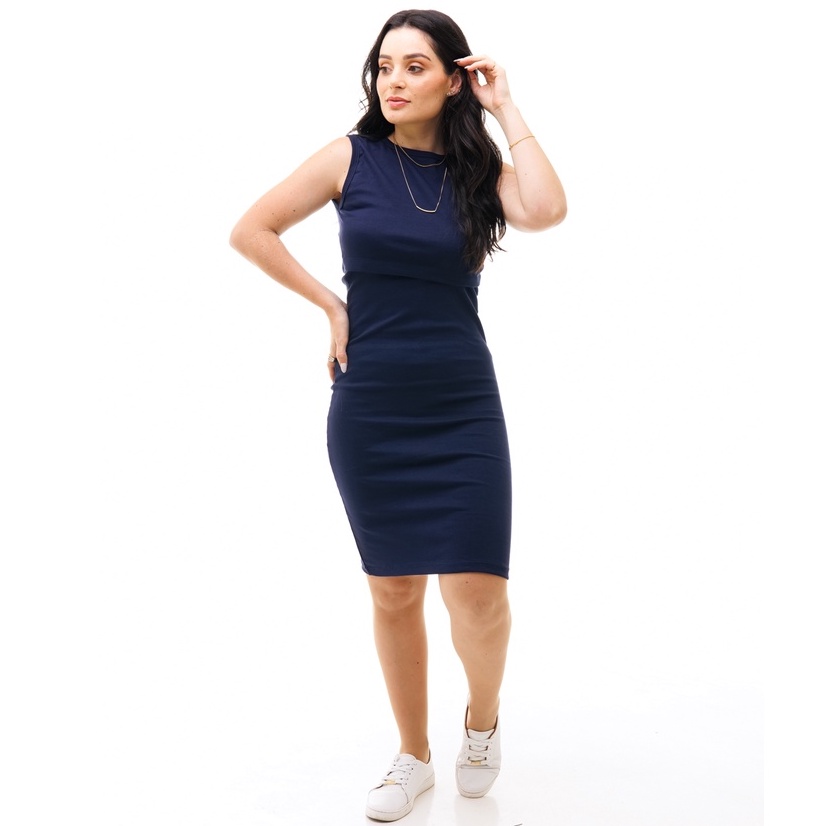 Vestido Midi Feminino Regata com Gola Afogada e Abertura Para Amamentação - Várias Cores