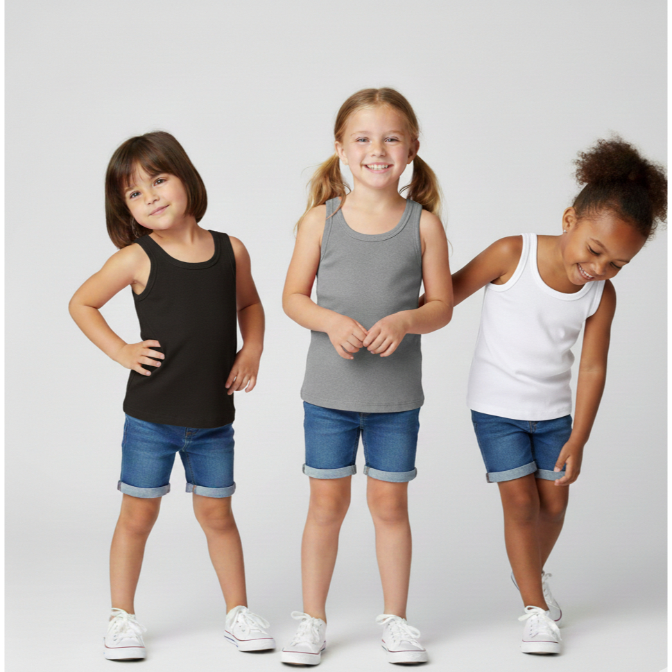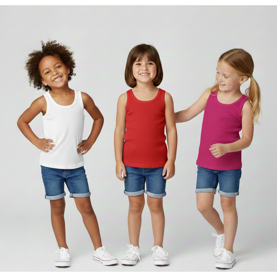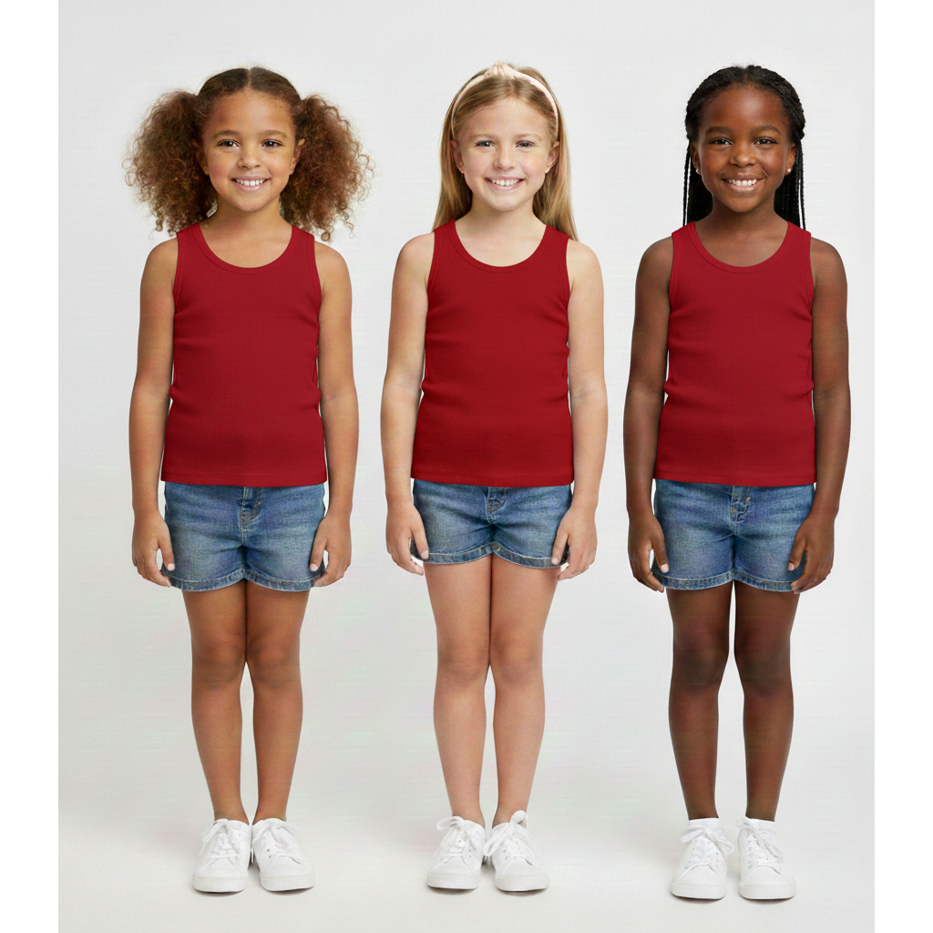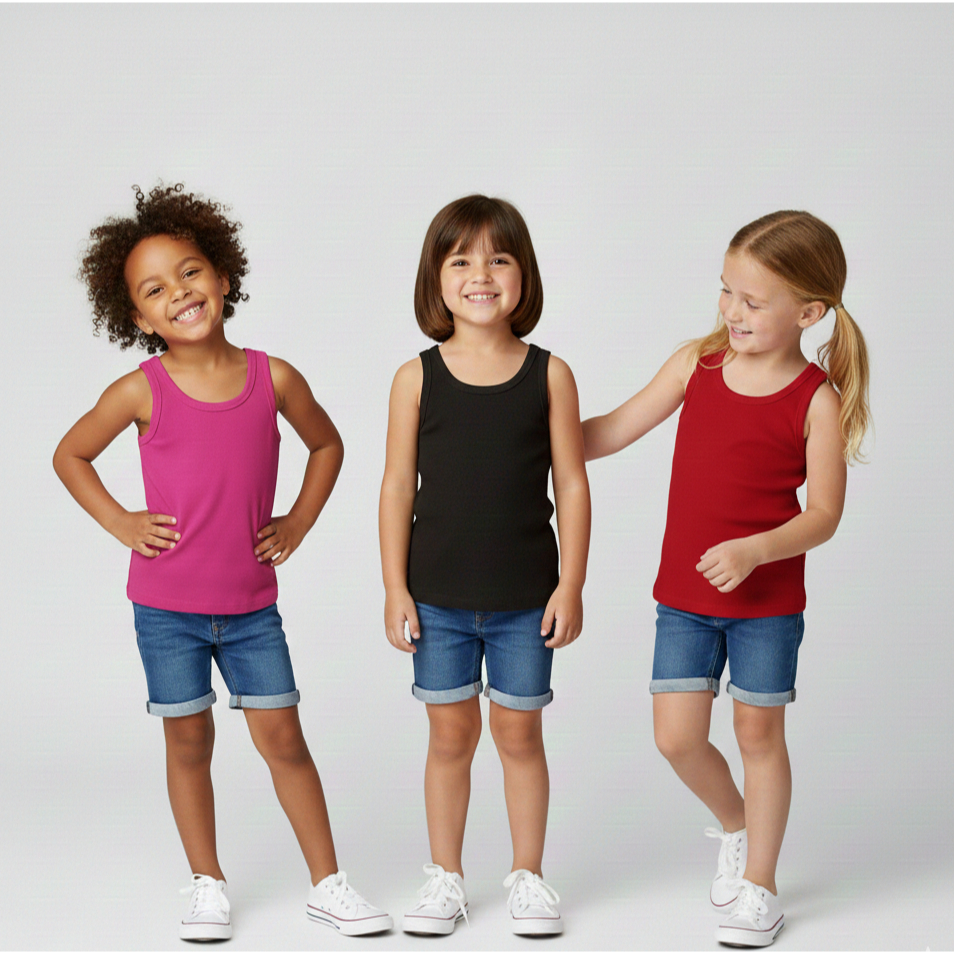 Kit 3 Regatas Ribana Infantil Básica Lisa Algodão Macia Crianças Verão