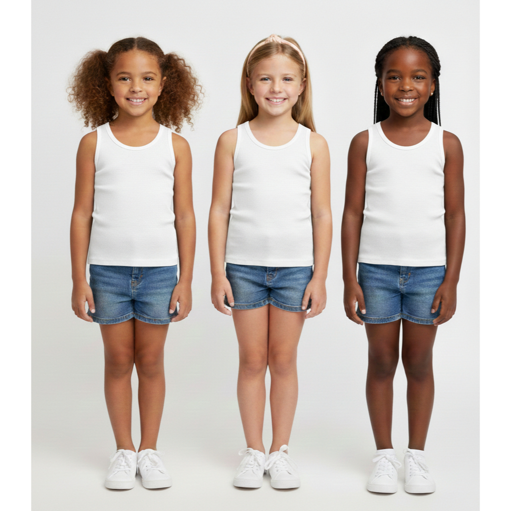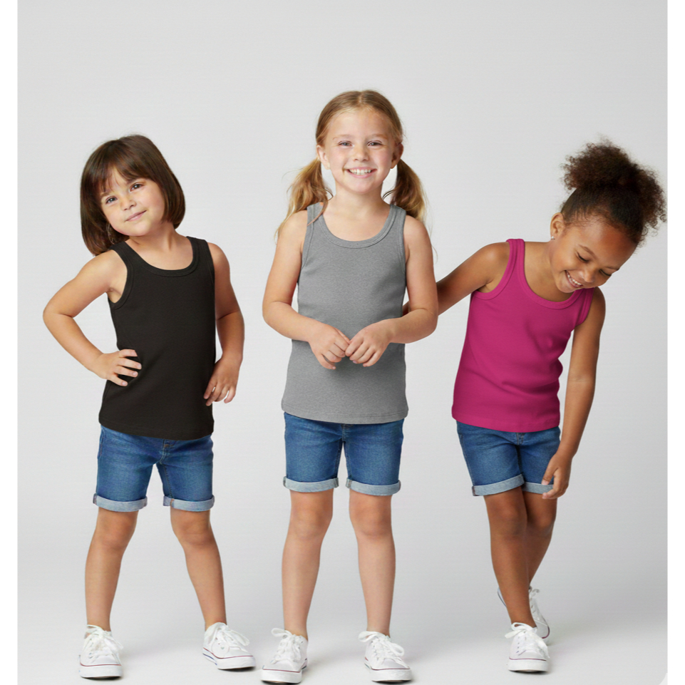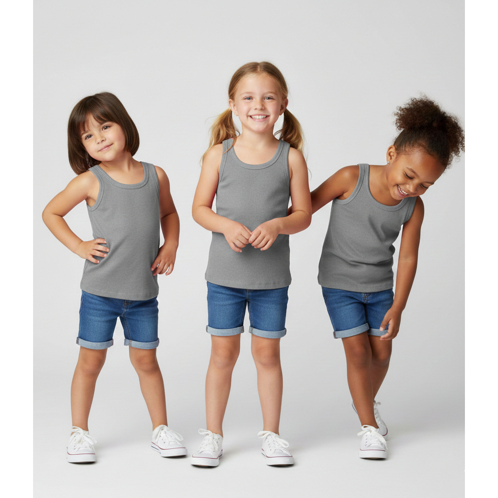 Kit 3 Regatas Ribana Infantil Básica Lisa Algodão Macia Crianças Verão