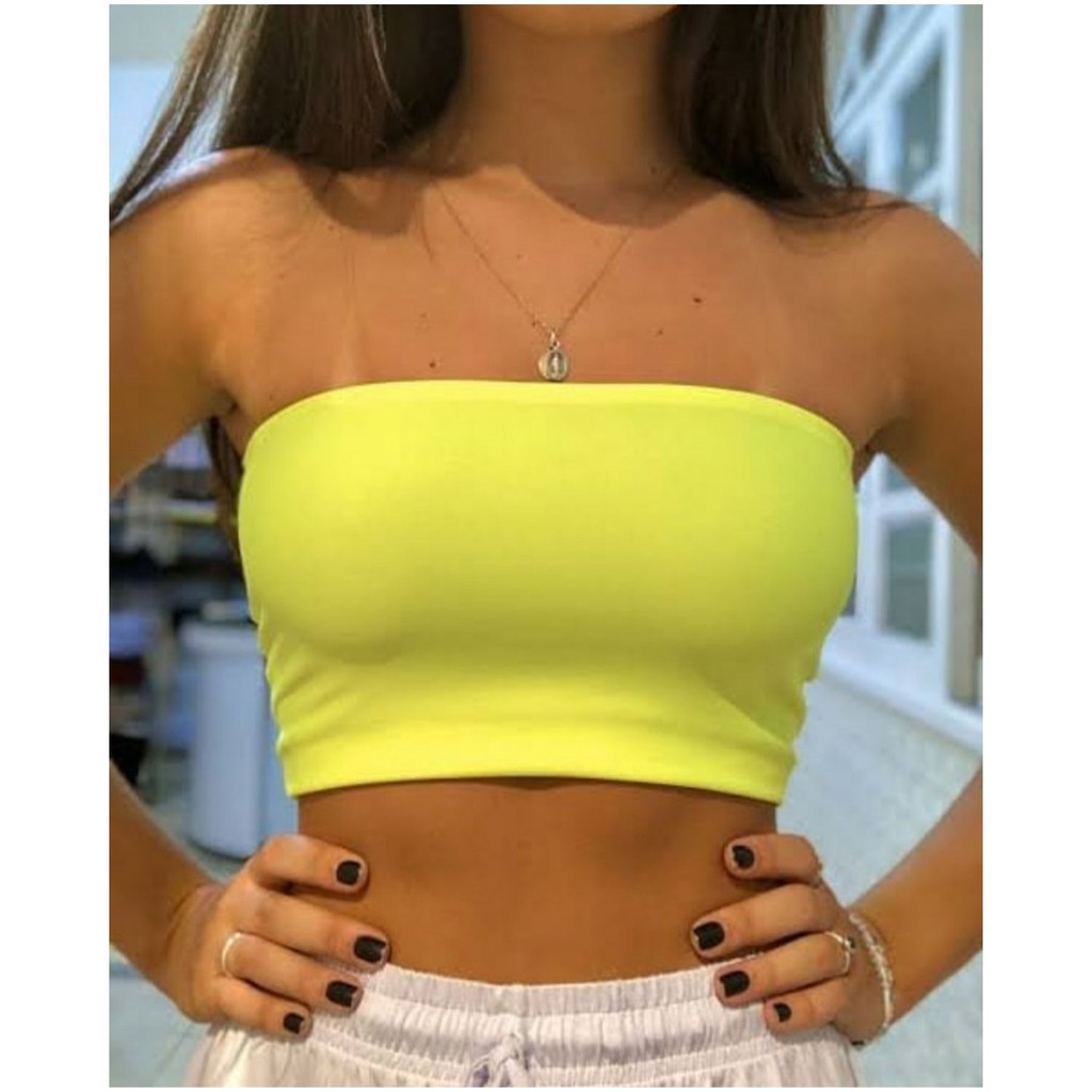Blusa Top Faixa Cropped Suplex Blusinha Tomara Que Caia Reto Com Bojo Moda Feminina