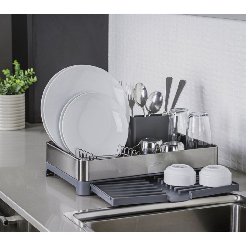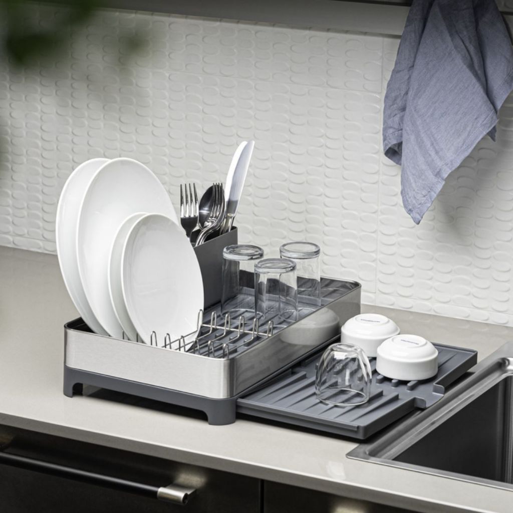 Escorredor de Louça Aço Inox com Bandeja Coletora Porta Copos Expansível Talheres Plurale Tramontina