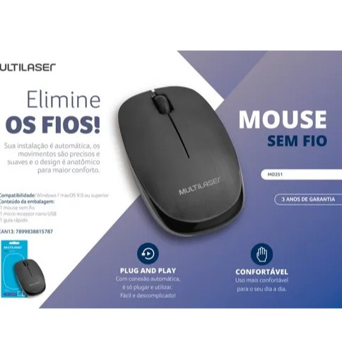 Mouse Sem Fio 2.4 Ghz 1200Dpi Plug e Play Preto Multilaser MO251