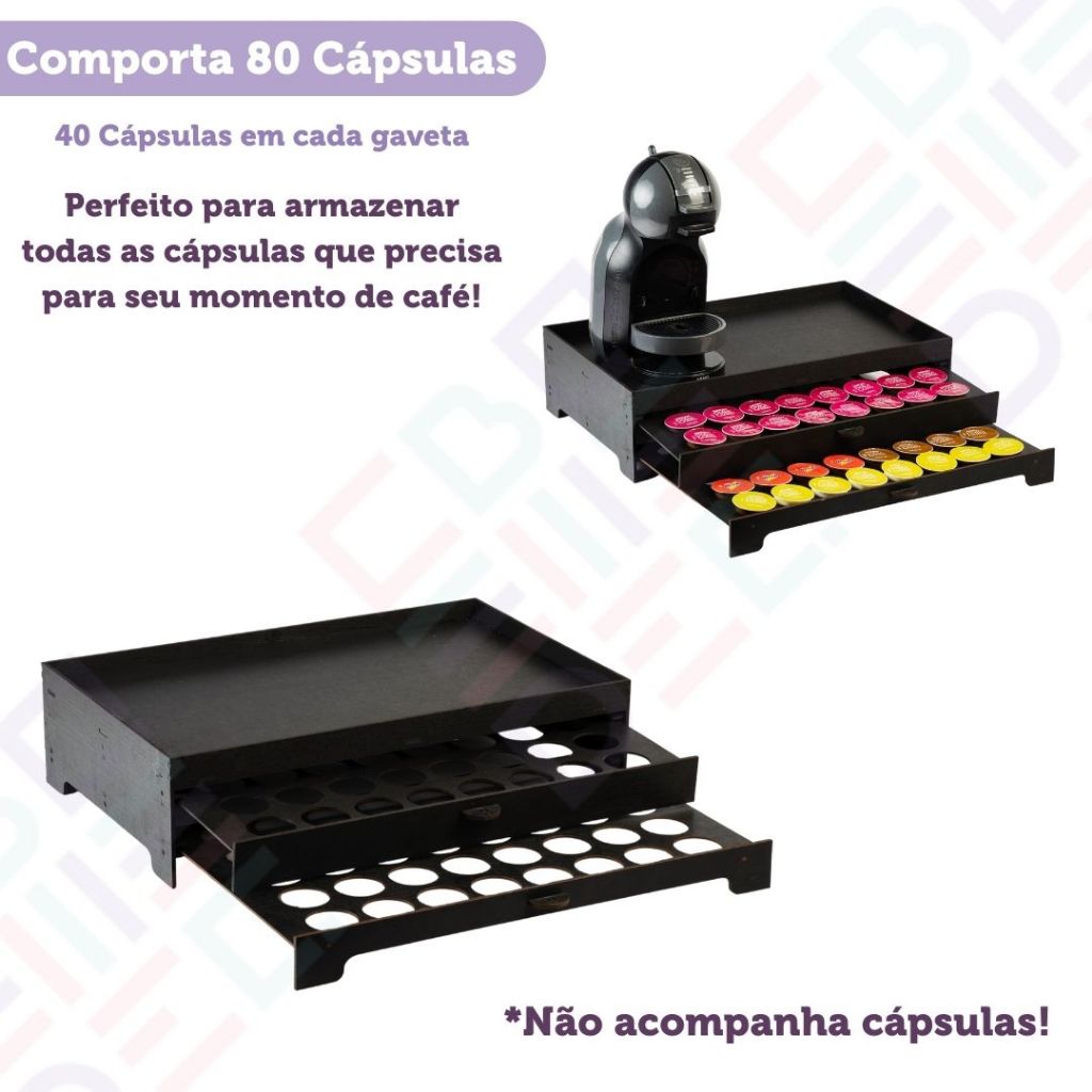 Bandeja Porta Capsulas Decorativa Preta Organizadora para 80 Capsulas para Cantinho do Cafe Cha Mdf