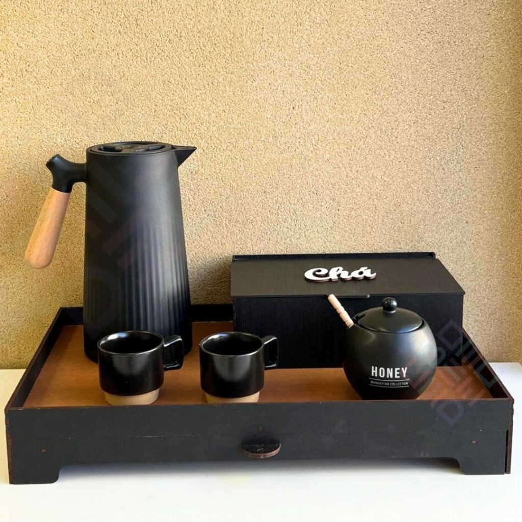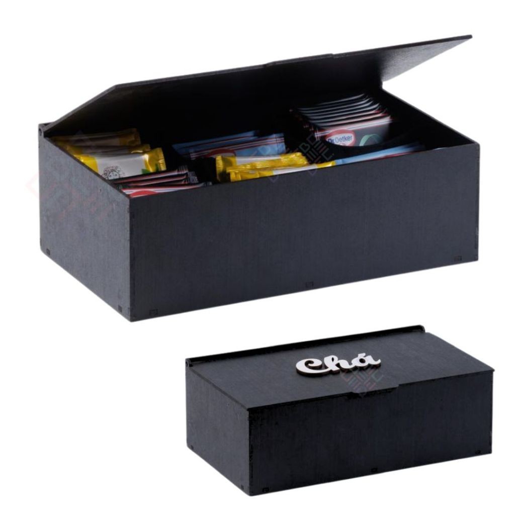 Caixa Porta Saches Chá Açucar Organizadora Com Tampa 6 divisorias Mdf Cantinho do Cafe Armazenamento