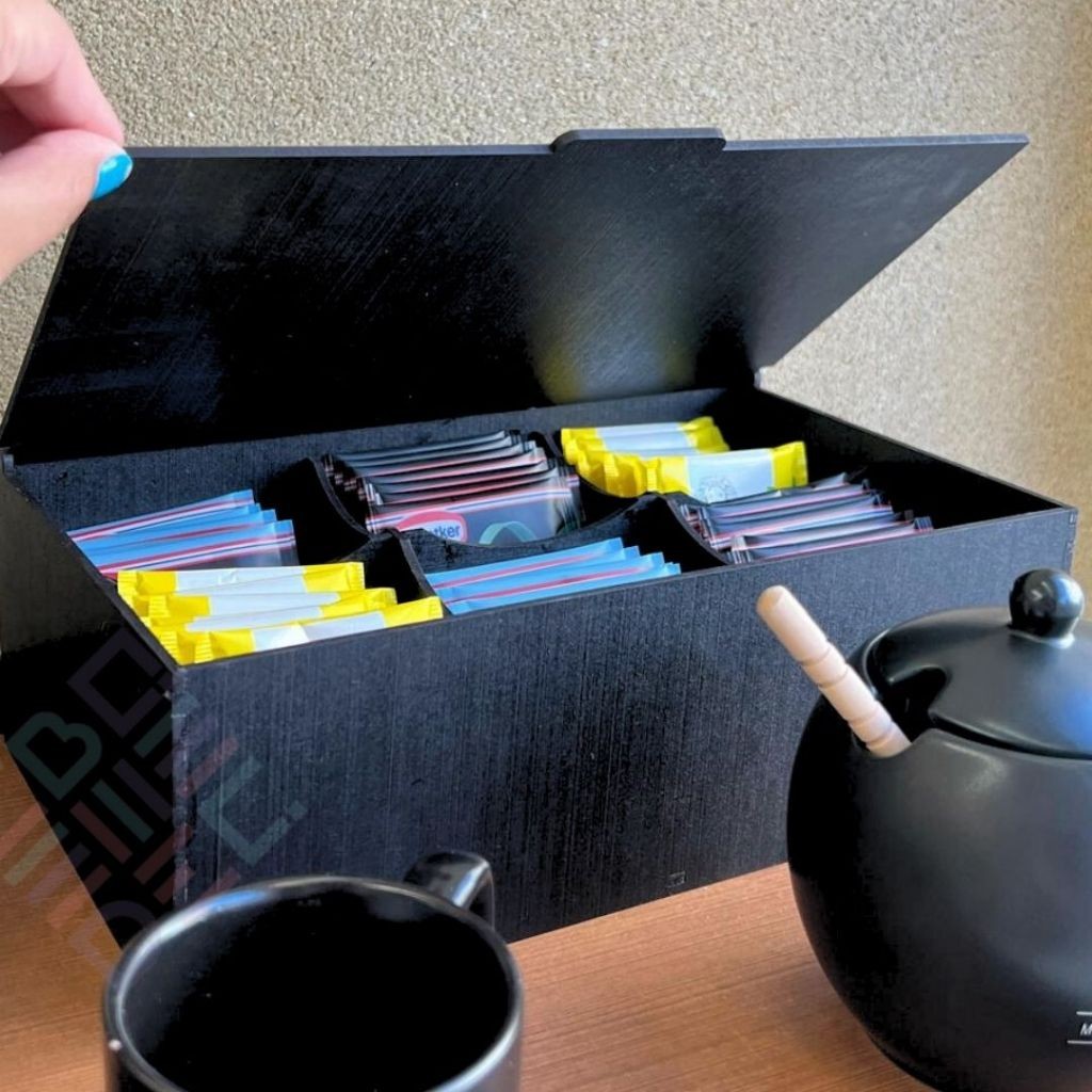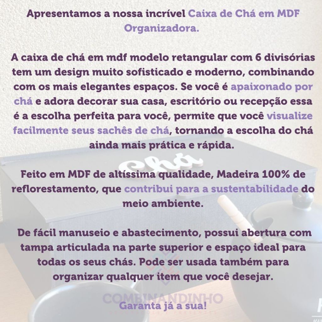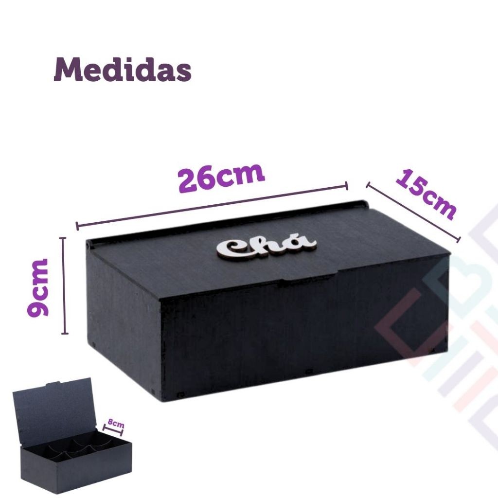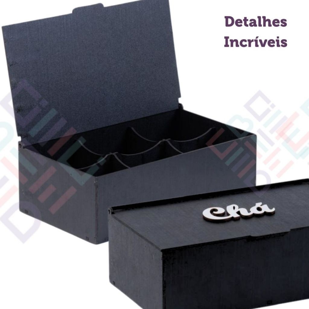 Caixa de Chá Organizador Universal 6 Divisoria Tampa Articulada Porta Saches Cha Açucar Multiuso Mdf