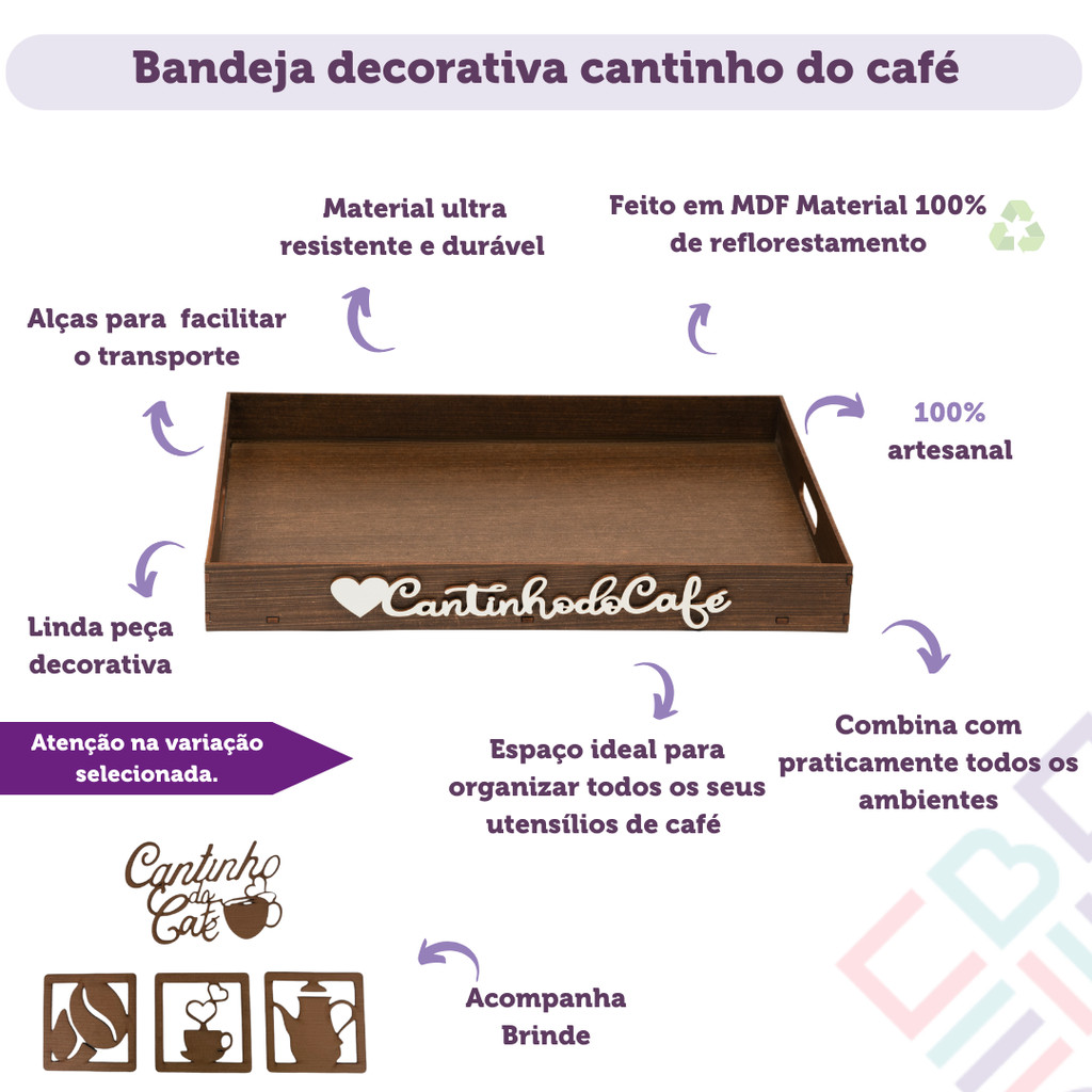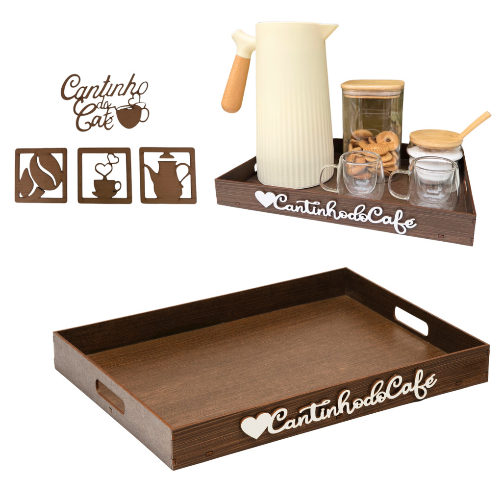 Conjunto Cantinho Do Café Em MDF Com Bandeja E Apliques De Parede Decorativo Para Cozinha Organizada