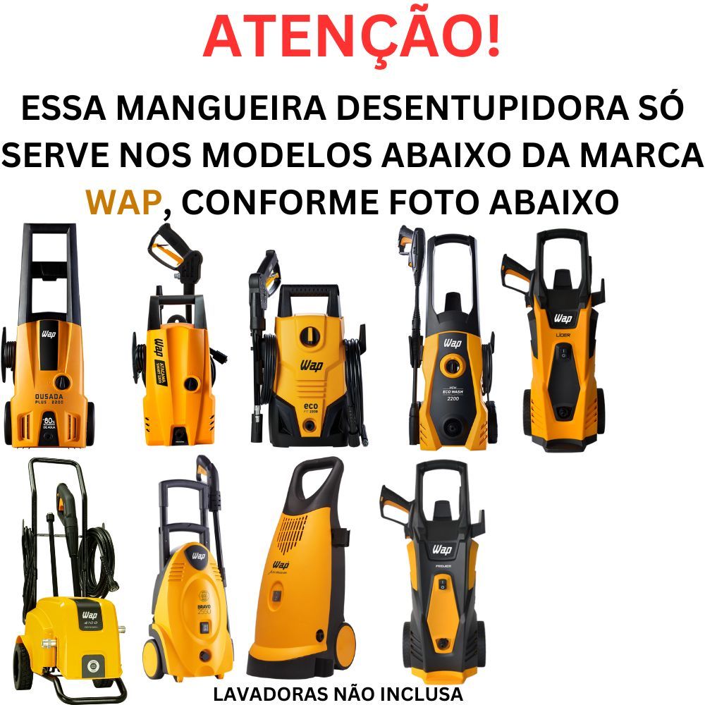 Mangueira Desentupidora de Tubulação 10 Metros Para Lavadoras Wap Ousada Plus 2200