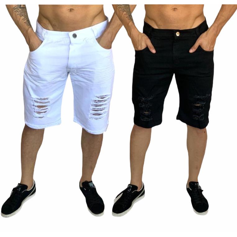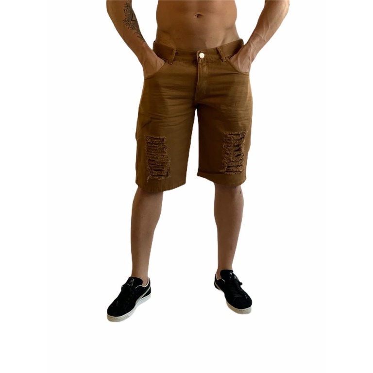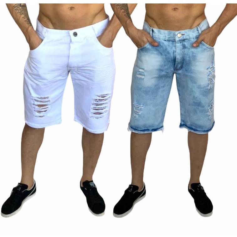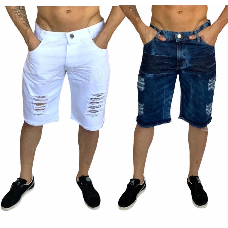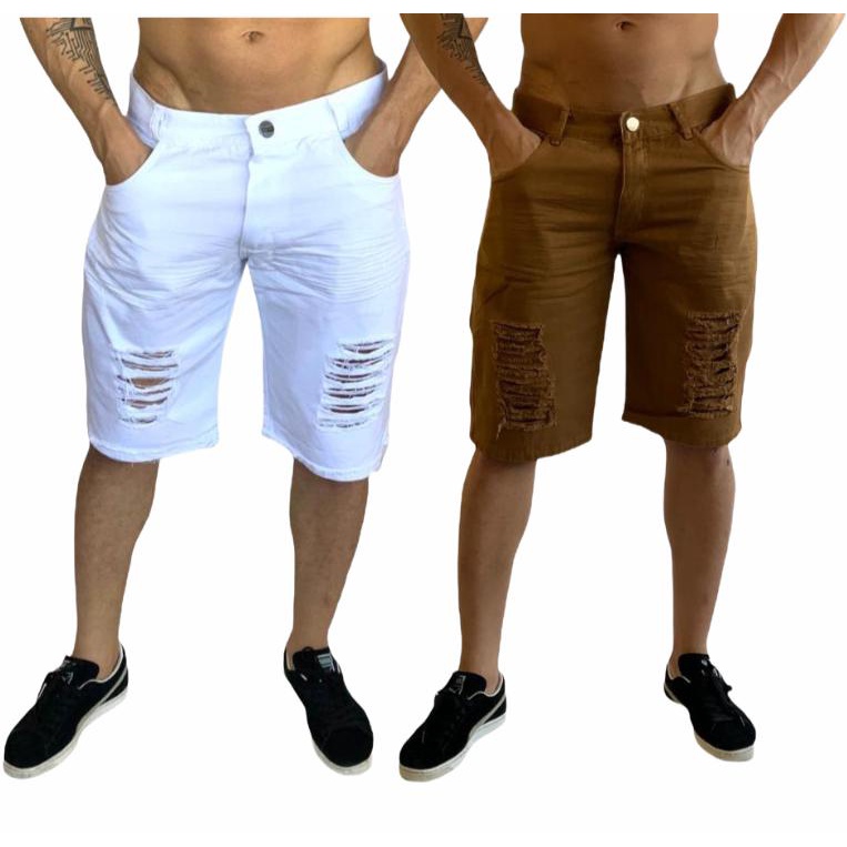 bermuda jeans masculina branca e marrom rasgada kit com 2