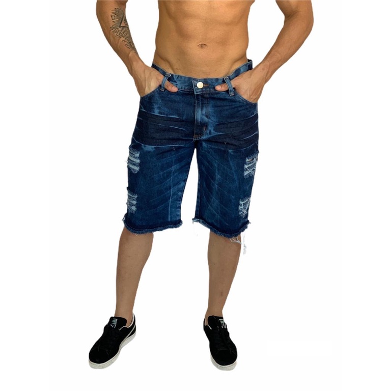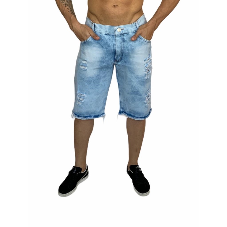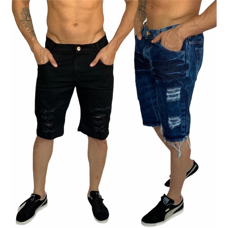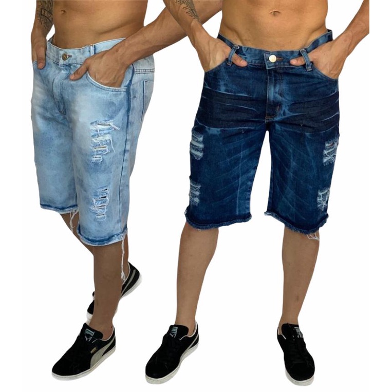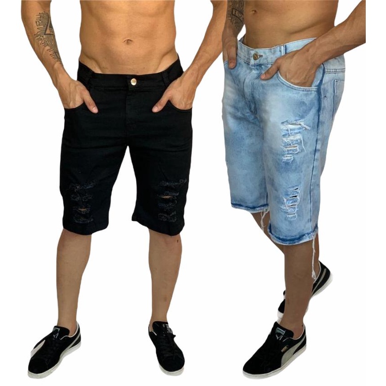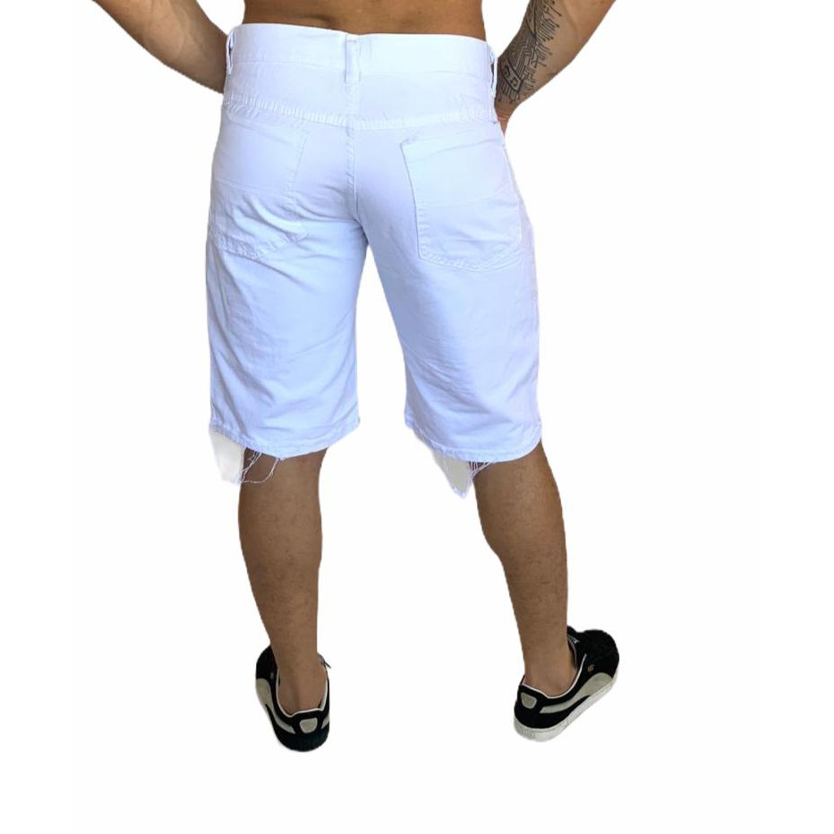 bermuda jeans masculina branca e marrom rasgada kit com 2
