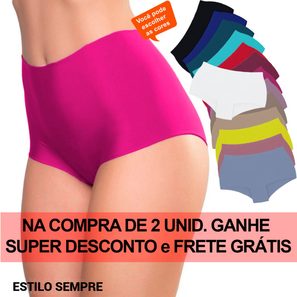 Calcinha Box Corte a Laser Sem Costura Cintura Alta Lingerie Feminina Revenda