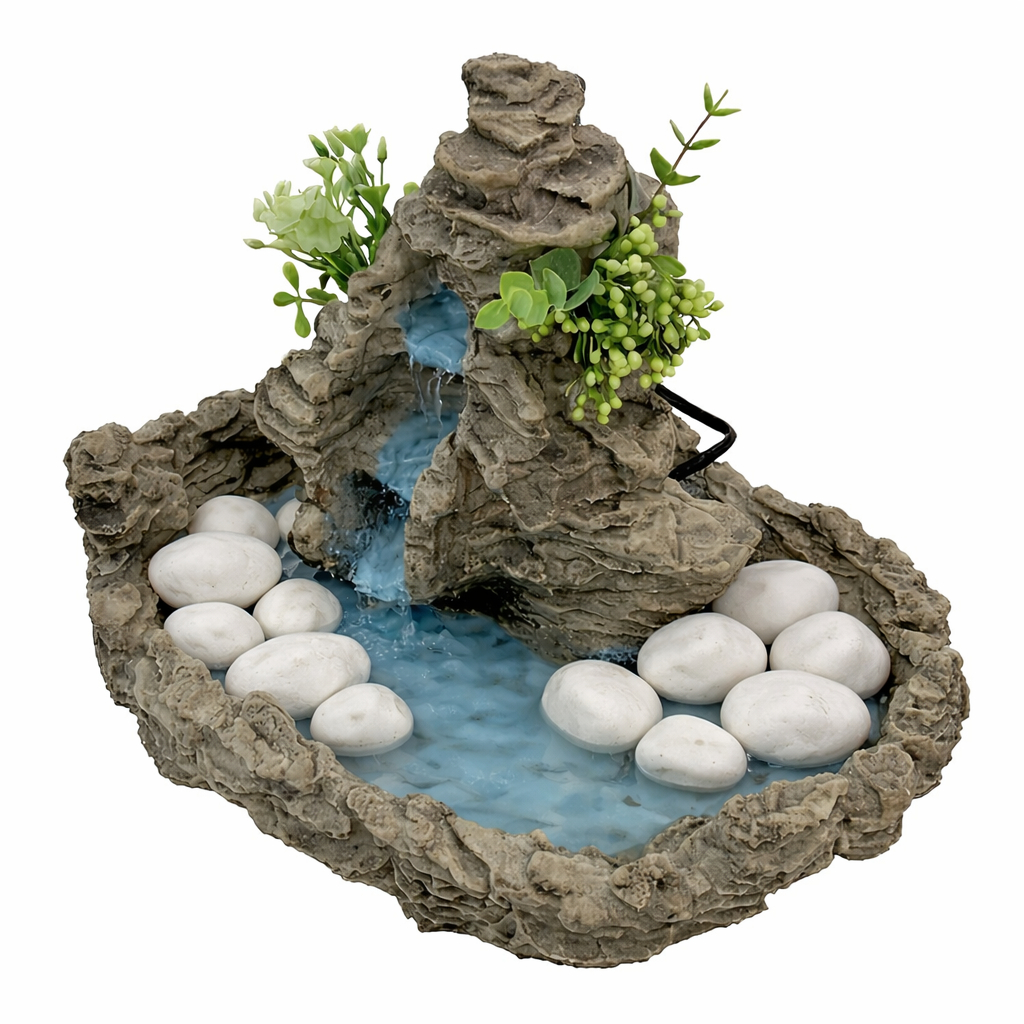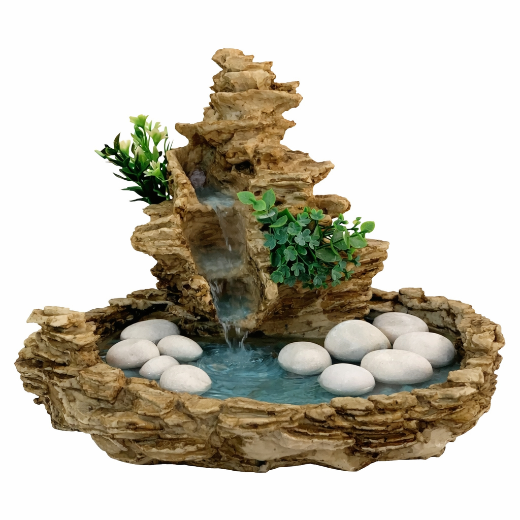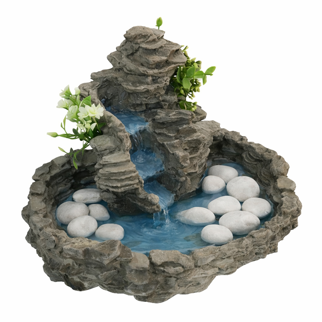 Fonte De Água Cascata Pedra Em Resina Decorativa Com Bomba