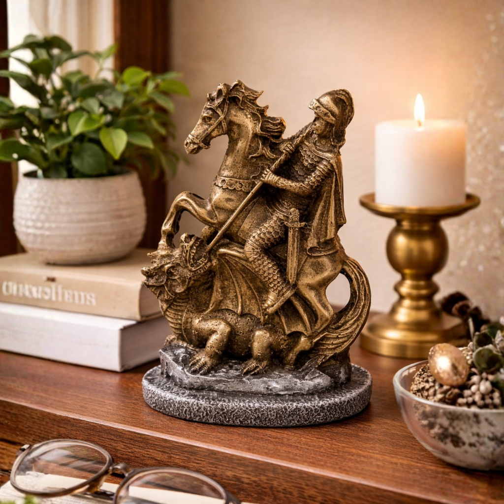 São Jorge No Cavalo Guerreiro Estatueta Decoração De Resina