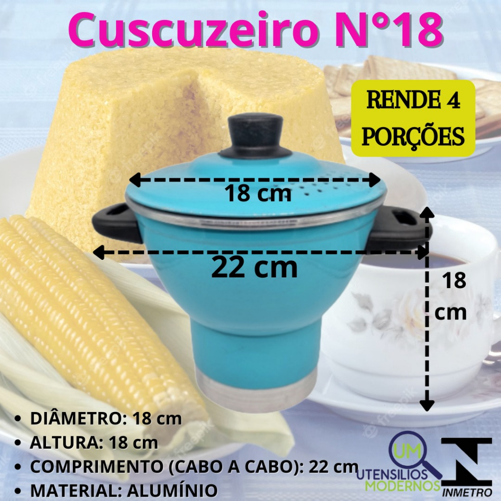 Cuscuzeira de Alumínio N 18 Colorido Porção para 4 Pessoas